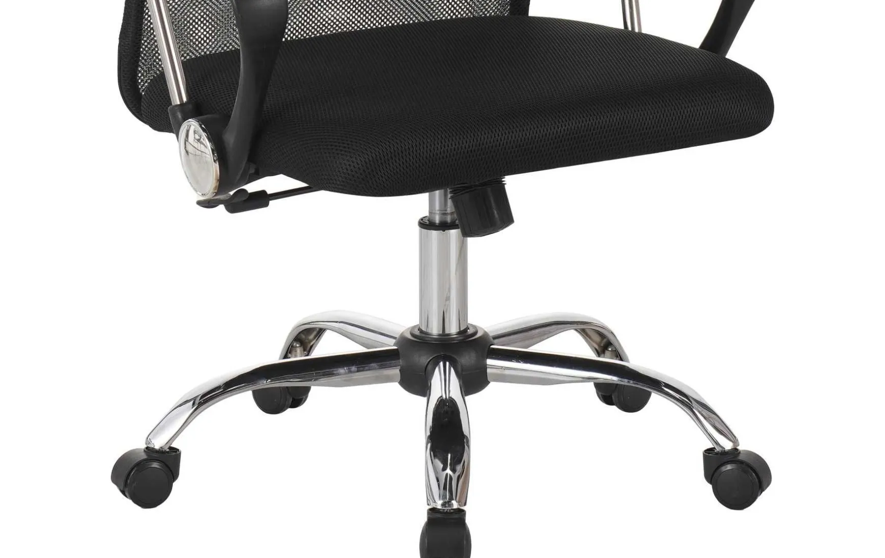 Der bequeme Drehstuhl in Schwarz kombiniert Komfort und Funktionalität für Büro oder Home-Office. Die 360°-drehbare Sitzfläche sowie die höhenverstellbare Sitzhöhe von ca. 44–54 cm ermöglichen ergonomisches Arbeiten, während die Kippfunktion zusätzlichen Komfort bietet. Die Mesh-Rückenlehne sorgt für atmungsaktiven Sitzkomfort, und das verchromte Gestell auf Teppichrollen garantiert Stabilität und Beweglichkeit. Mit den Maßen ca. 60 × 107–117 × 61 cm (B × H × T), einer Belastbarkeit von ca. 110 kg und einem Gewicht von ca. 10,5 kg ist der Stuhl kompakt und zugleich belastbar.