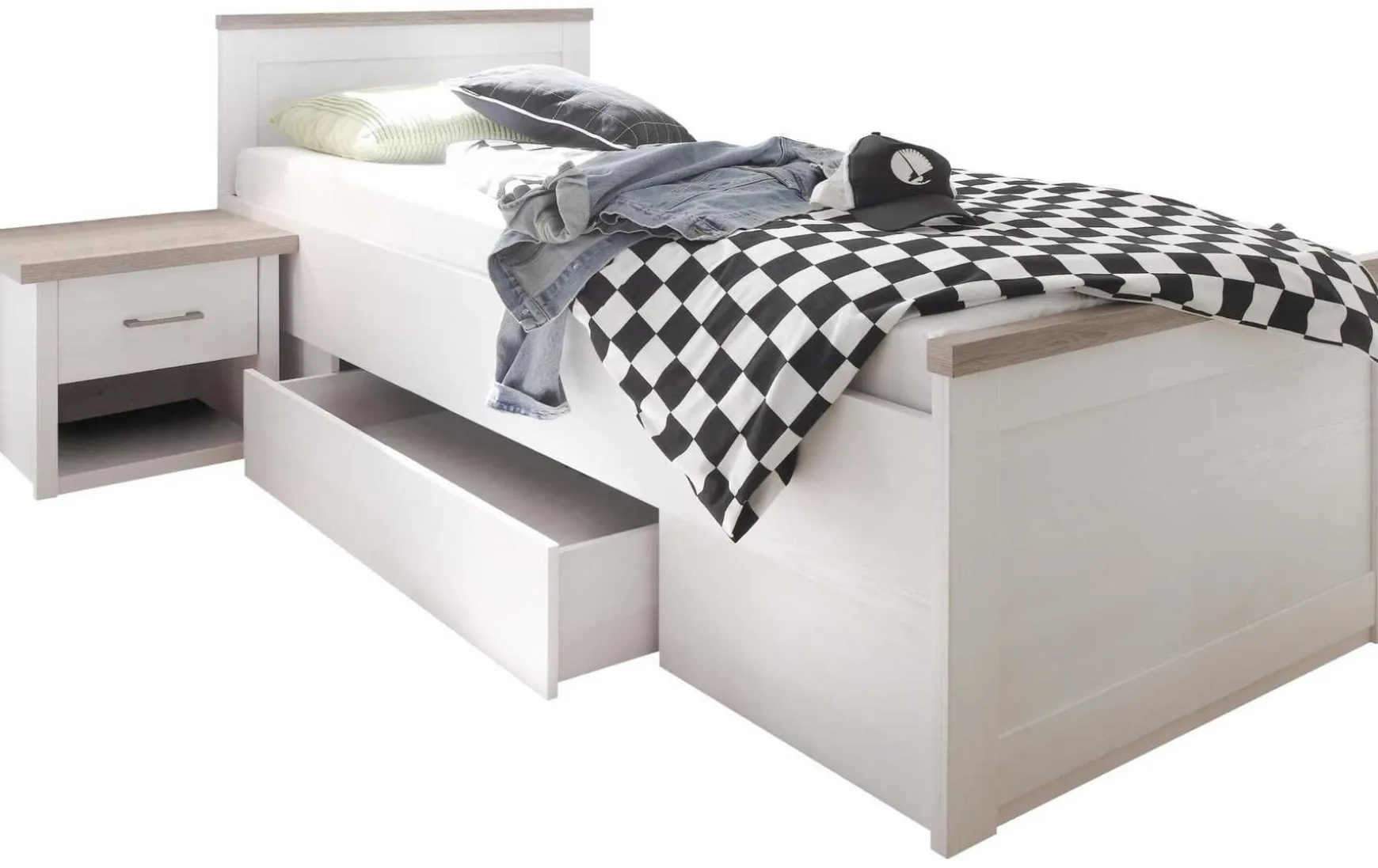 - Nicht im Preis enthalten: Dekoration, Lattenrost, Matratze, Nachkommode