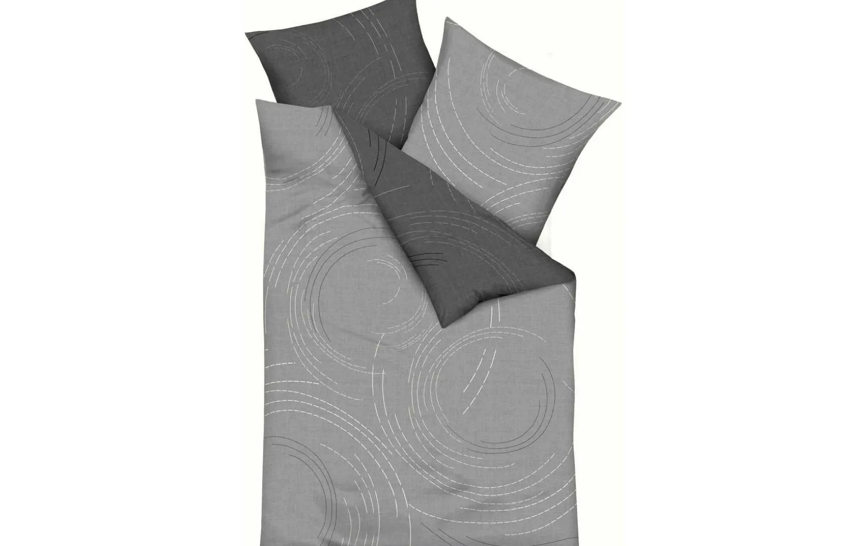 Die kreisförmigen Elemente auf der weichen Bettwäsche bestehen aus einzelnen Strichen und wirken unaufdringlich dekorativ.