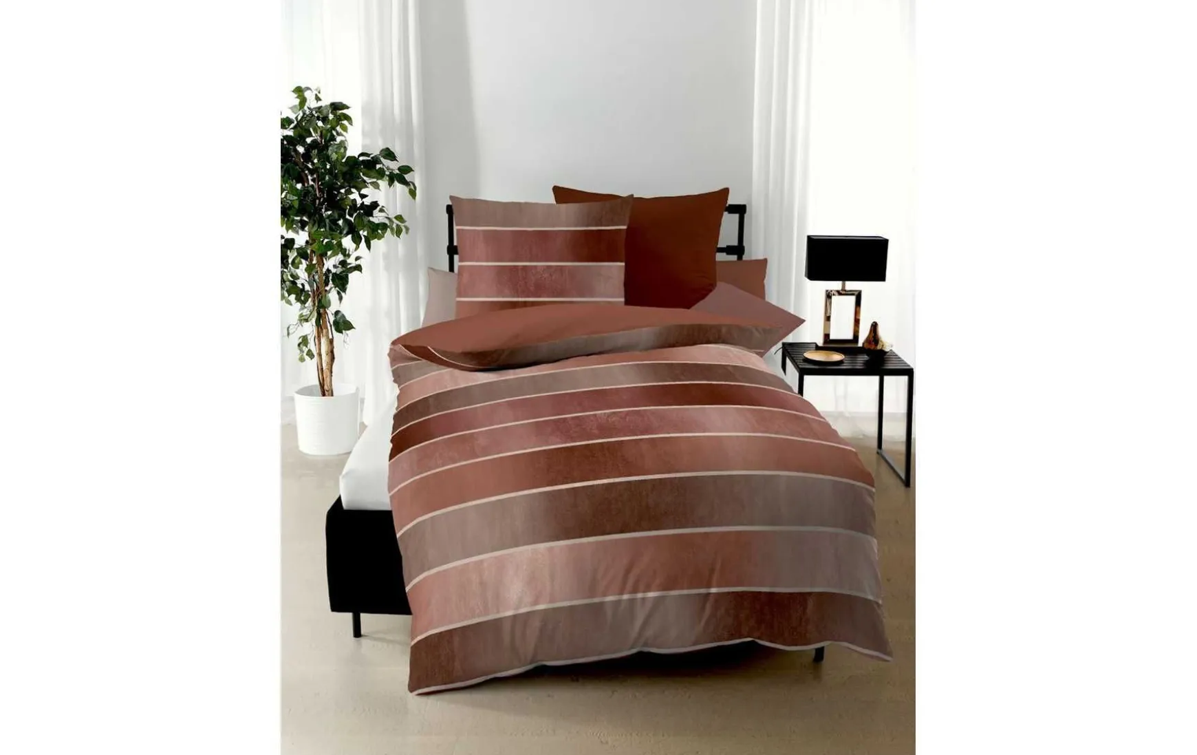 Die Streifen auf der weichen Bettwäsche bestehen aus einzelnen Strichen und wirken unaufdringlich dekorativ.