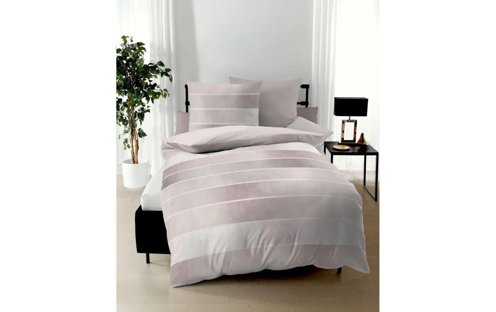 Die Streifen auf der weichen Bettwäsche bestehen aus einzelnen Strichen und wirken unaufdringlich dekorativ.
