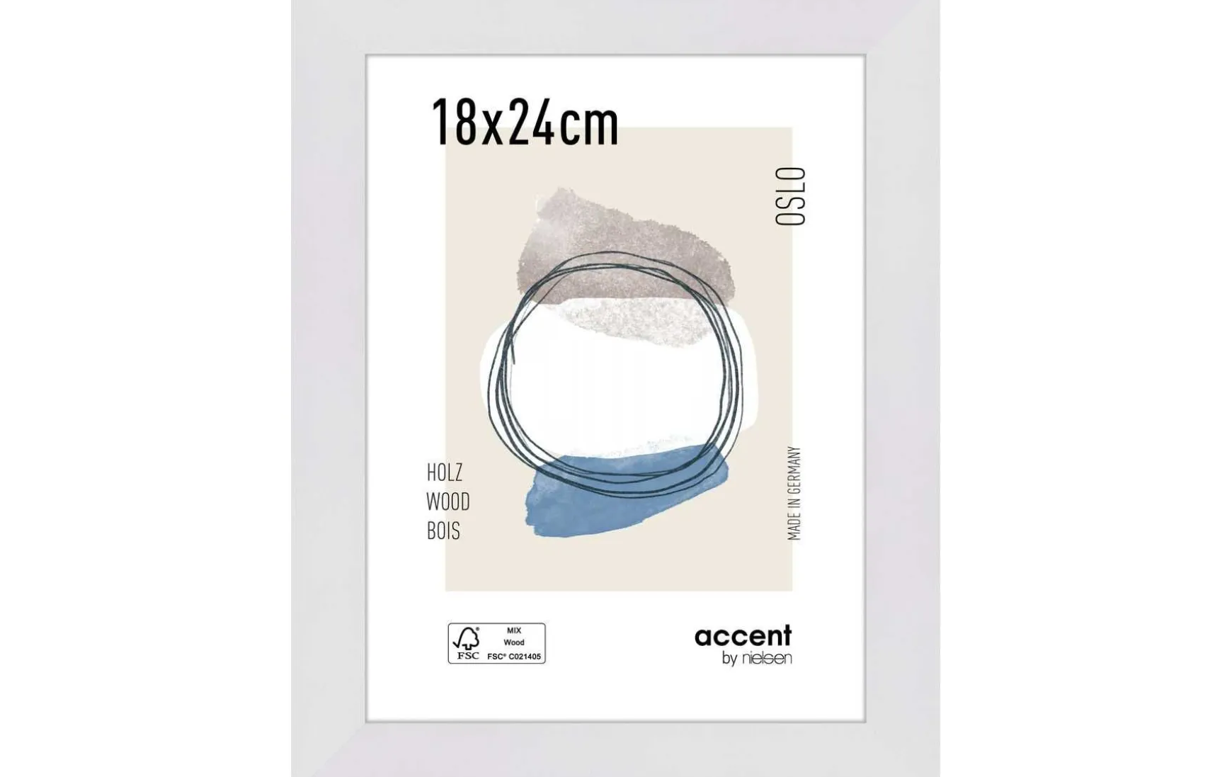 Der moderne Rahmen mit einem breiten MDF Profil von 28 mm wird in Deutschland hergestellt und ist FSC-zertifiziert.