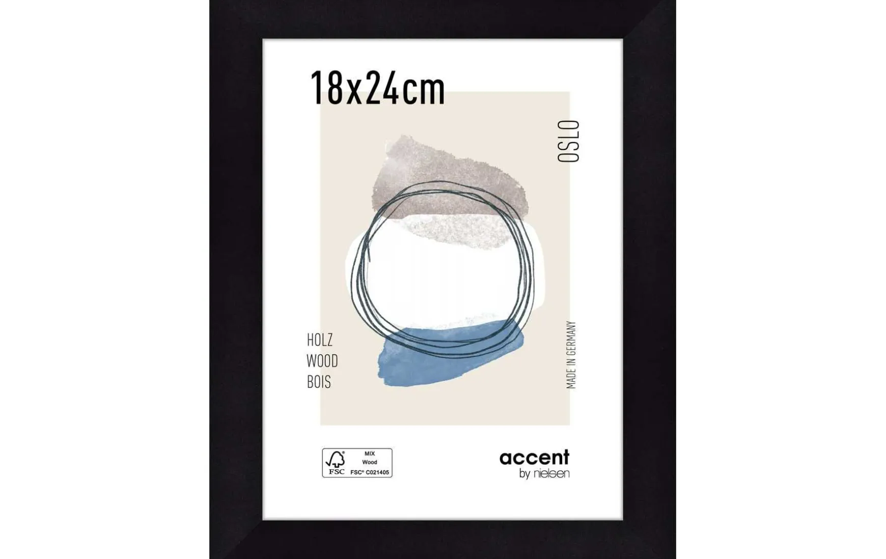 Der moderne Rahmen mit einem breiten MDF Profil von 28 mm wird in Deutschland hergestellt und ist FSC-zertifiziert.