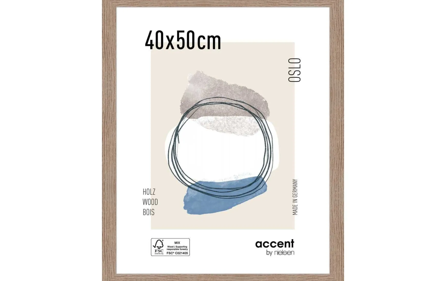 Der moderne Rahmen mit einem breiten MDF Profil von 28 mm wird in Deutschland hergestellt und ist FSC-zertifiziert.