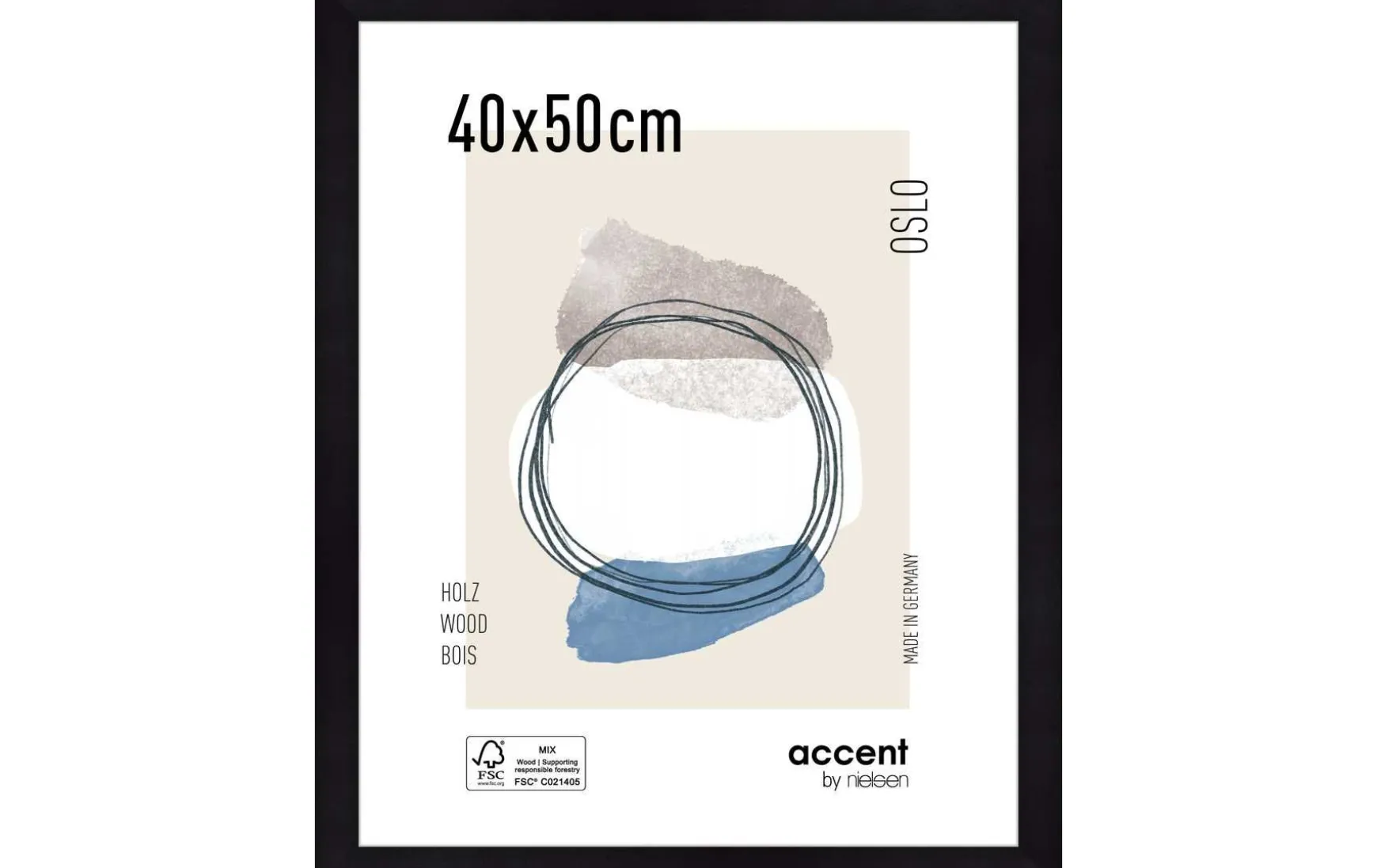 Der moderne Rahmen mit einem breiten MDF Profil von 28 mm wird in Deutschland hergestellt und ist FSC-zertifiziert.