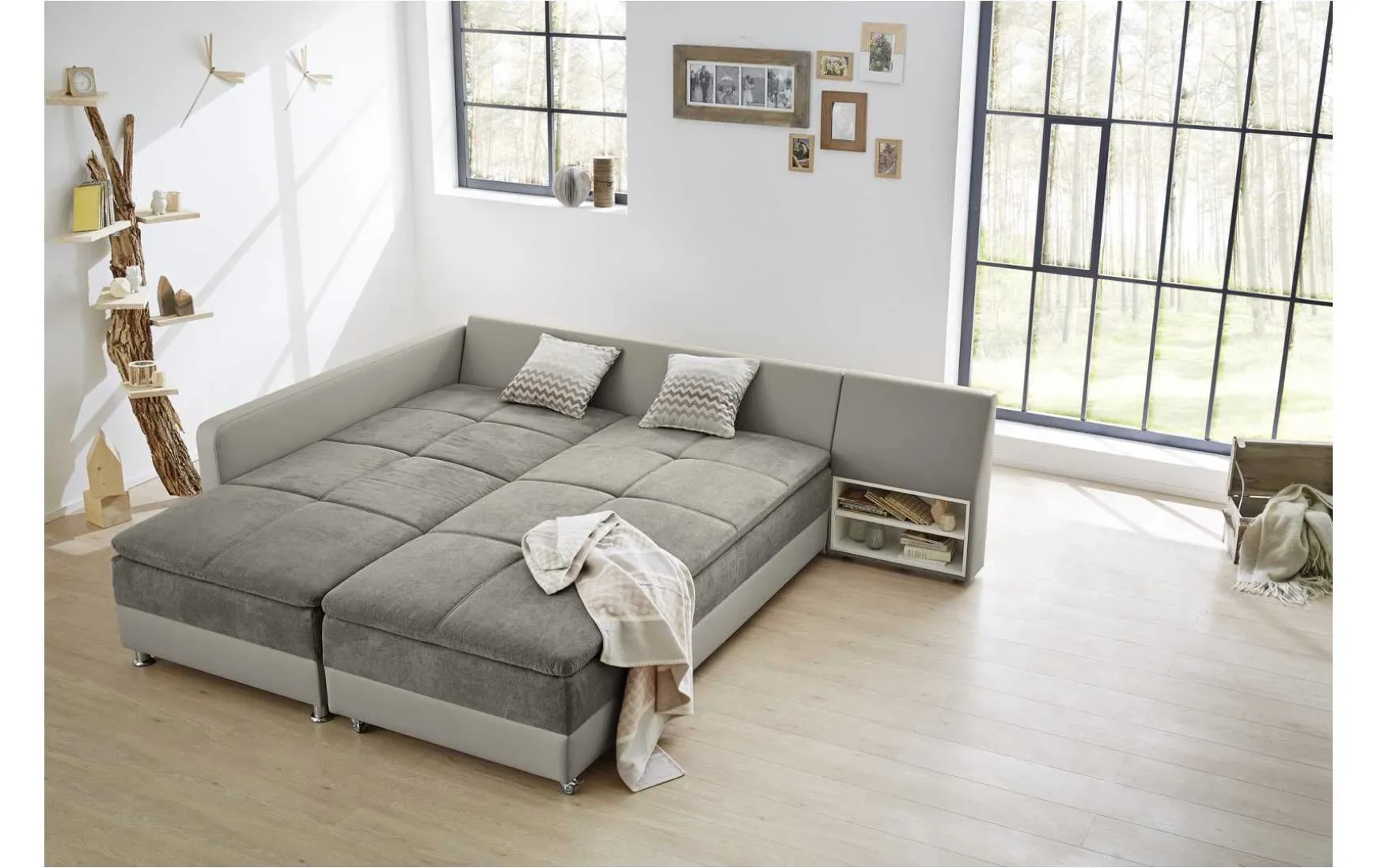 Ein cleveres Polstermöbelkonzept, mit welchem eine äußerst bequeme Sitzgelegenheit und eine Dauerschlafgelegenheit gekonnt miteinander verbunden werden. Als Ecksofa bietet es mit einer Stellfläche von ca. 223 x 307 cm viel Platz, um es sich allein oder in Gesellschaft so richtig gemütlich zu gestalten. Als vollwertiges Bett, welches Sie durch leichtes eindrehen der rechten Ottomane erhalten, ist es Ihnen möglich ganz entspannt ins Traumland abtauchen zu können.