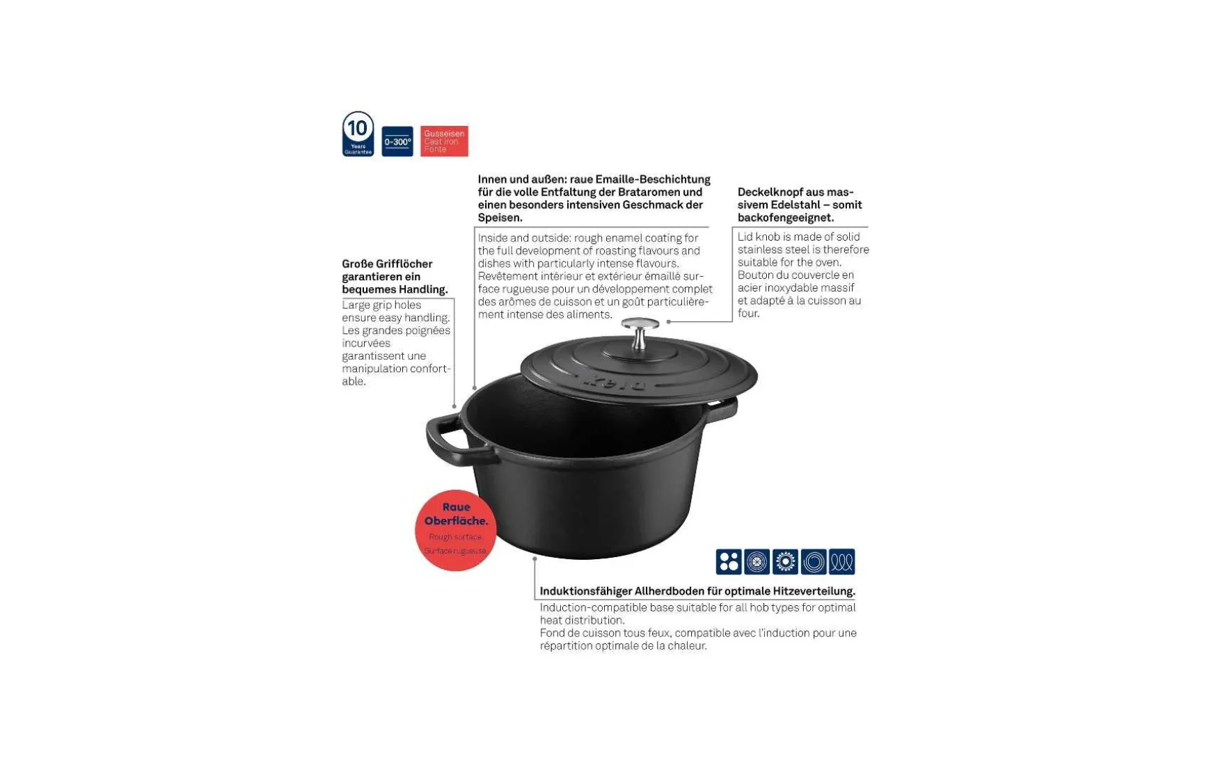 - Gusseisen Bräter bis 300°C