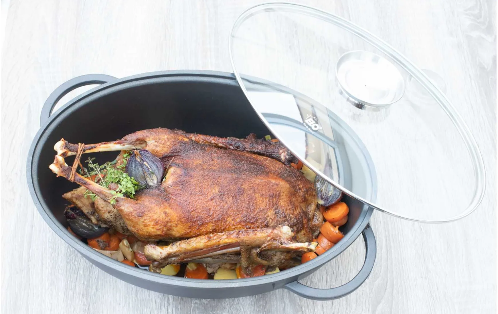 Durch die Kompatibilität mit allen Herdarten, einschließlich Gas, Elektro und Induktion, eignet sich dieser Bräter ideal als vielseitiger Backofen- und Herd-Bräter für anspruchsvolle Gerichte.