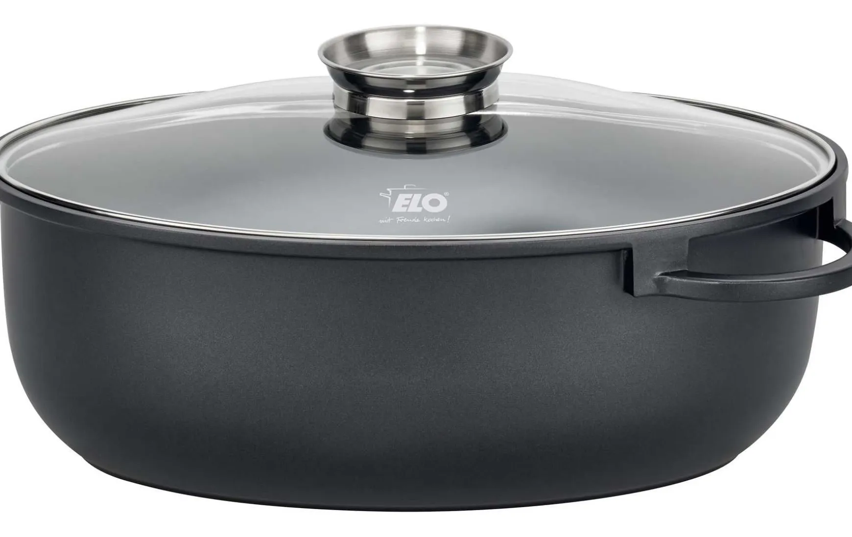 Der Alucast Bräter oval überzeugt durch eine gleichmäßige Wärmeverteilung bis zum Rand, dank des hochwertigen Aluminiumguss-Materials mit einer Wandstärke von ca. 2,8 mm und einem Boden von ca. 5 mm.