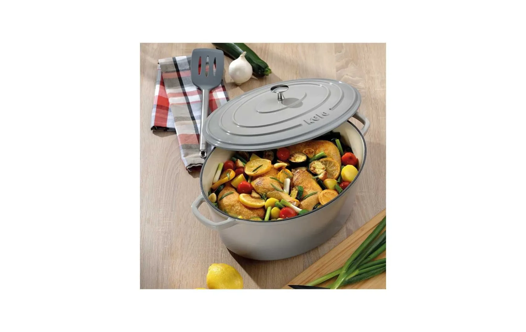 Dieser ovale Bräter zeichnet sich durch eine Emaille-Beschichtung sowohl innen als auch außen aus. Dies sorgt für einfaches Anbraten und eine einfache Reinigung. Der induktionsfähige Allherdboden sorgt für eine optimale Hitzeverteilung und die großen Griffe für ein besseres Handling. Zudem besitzt der Bräter einen backofengeeigneten Deckelknopf aus massivem Edelstahl. Die sehr gute Wärmespeicherung und gleichmäßige Hitzeverteilung sind weitere Vorteile des ovalen Bräters.Der Bräter (emailliert) eignet sich für alle Herdarten (auch für Induktion!), zum Beispiel für länger dauernde Schmorgerichte. Nutzbar bis 300° C.