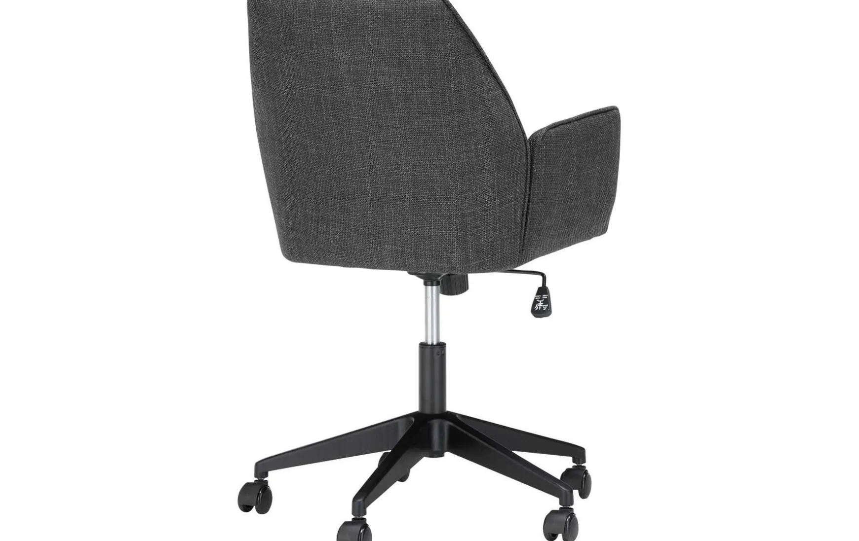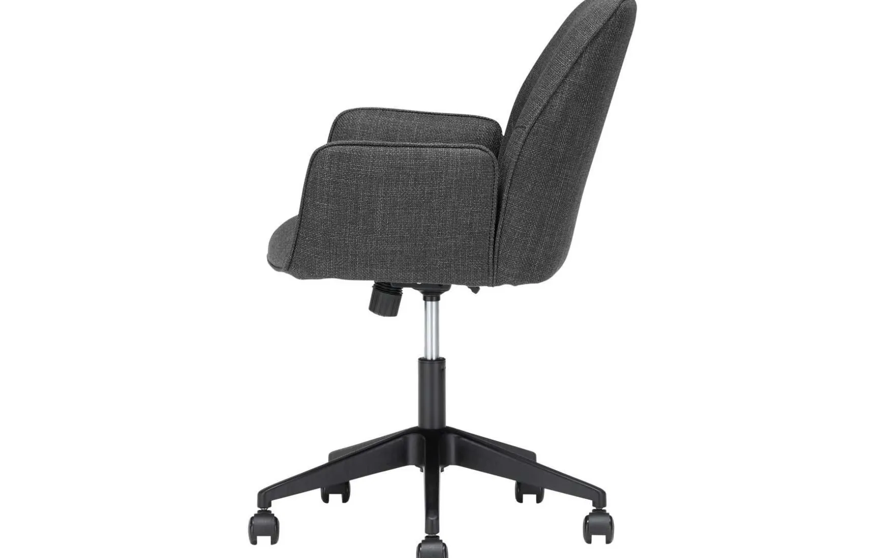 Dieser Bürodrehstuhl verbindet ergonomischen Sitzkomfort mit funktionalem Design. Der Stoffbezug in Anthrazit ist angenehm im Alltag und pflegeleicht, die Armlehnen entlasten Schultern und Arme bei längerem Sitzen. Dank des stabilen PU-Gestells in Schwarz mit 5 Rollen bleibt der Stuhl stets flexibel und leicht beweglich. Die Sitzhöhe ist von ca. 49 bis 59 cm verstellbar, sodass er individuell angepasst werden kann. Zusätzlich sorgt der Butterfly-Mechanismus für Beweglichkeit und unterstützt dynamisches Sitzen. Mit einer Belastbarkeit bis 120 kg bietet er Stabilität für den täglichen Einsatz im Homeoffice oder Büro. Ein Stuhl, der Komfort, Funktion und modernes Design vereint – zu einem Preis, der angenehm überrascht.