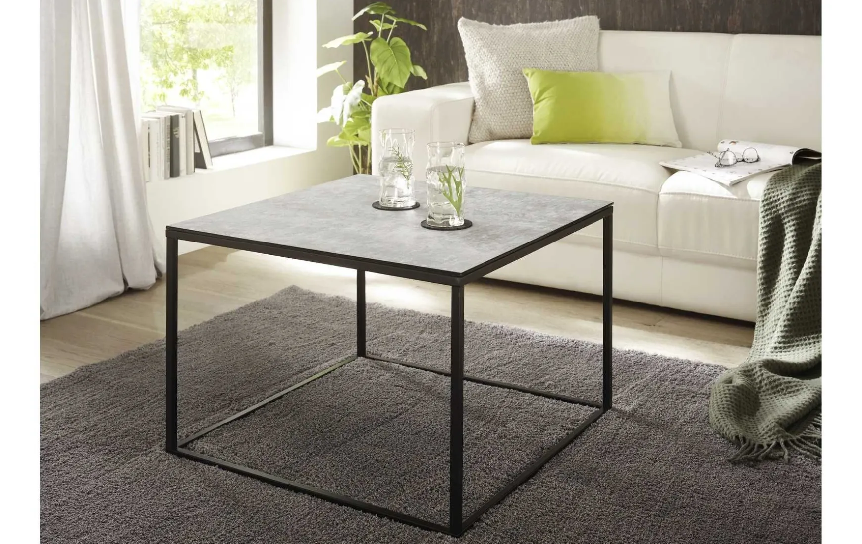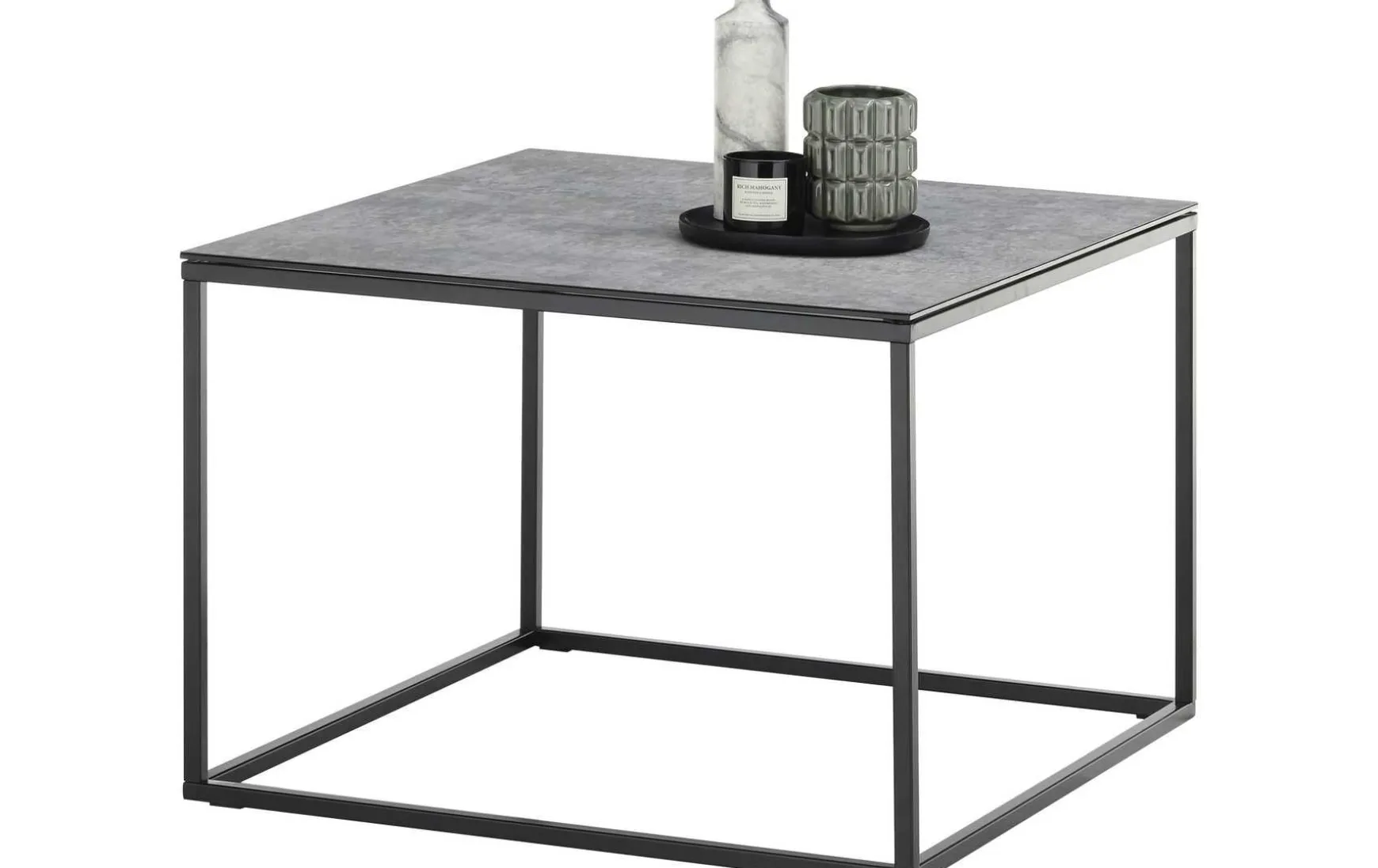 Dieser moderne Couchtisch überzeugt mit einer edlen Tischplatte in grauer Keramikoptik und einem stabilen, schwarz pulverbeschichteten Metallgestell. Das zeitlose Design fügt sich harmonisch in moderne Wohnräume ein und bietet eine praktische Ablagefläche für den täglichen Gebrauch.