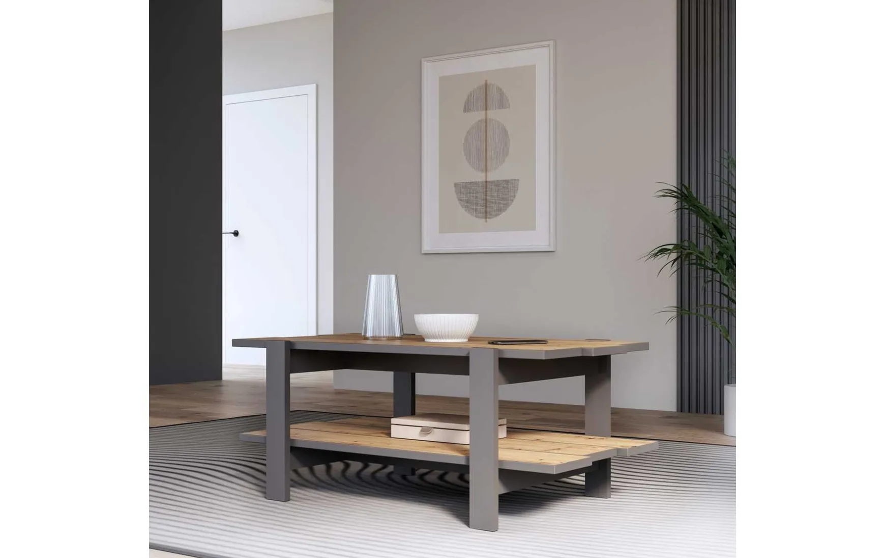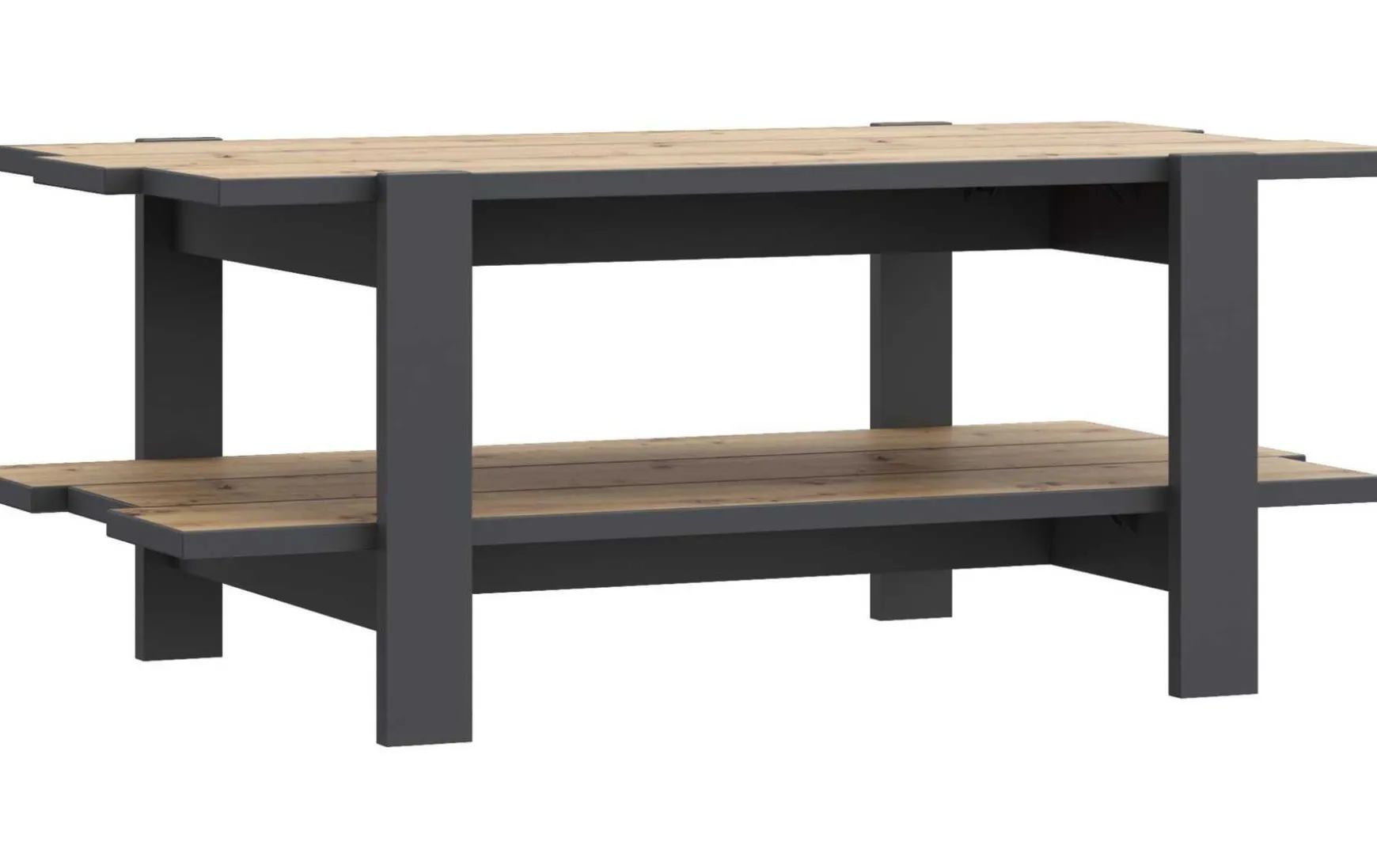 Dieser moderne Couchtisch überzeugt durch sein stilvolles Design in Wolfram Grau mit attraktiven Absetzungen in Artisan Eiche Dekor. Die rechteckige Tischplatte bietet mit ca. 110 × 60 cm ausreichend Platz für Getränke, Snacks oder Dekoration und fügt sich harmonisch in zeitgemäße Wohnkonzepte ein. Mit einer Höhe von ca. 45 cm ist der Tisch ideal auf Sitzmöbel abgestimmt. Die pflegeleichte Dekoroberfläche lässt sich einfach trocken abwischen und macht den Couchtisch zu einem praktischen sowie optisch ansprechenden Mittelpunkt im Wohnzimmer.