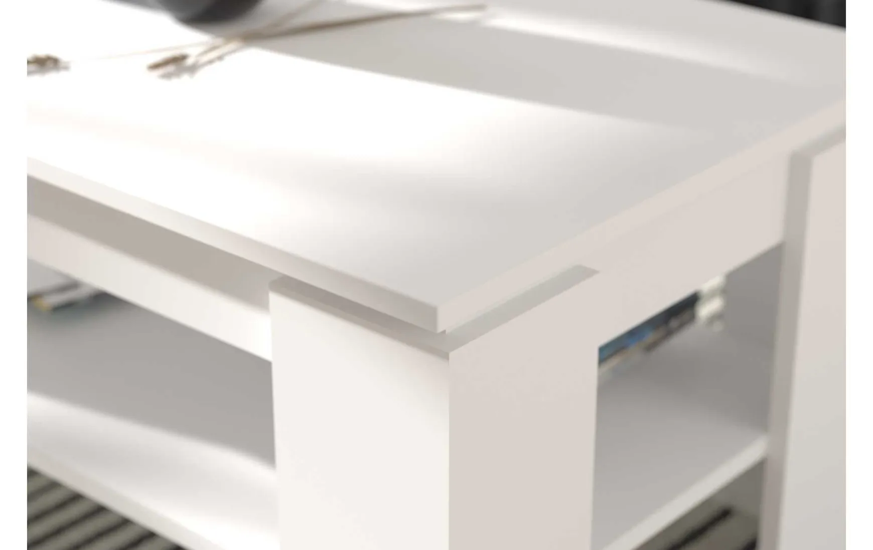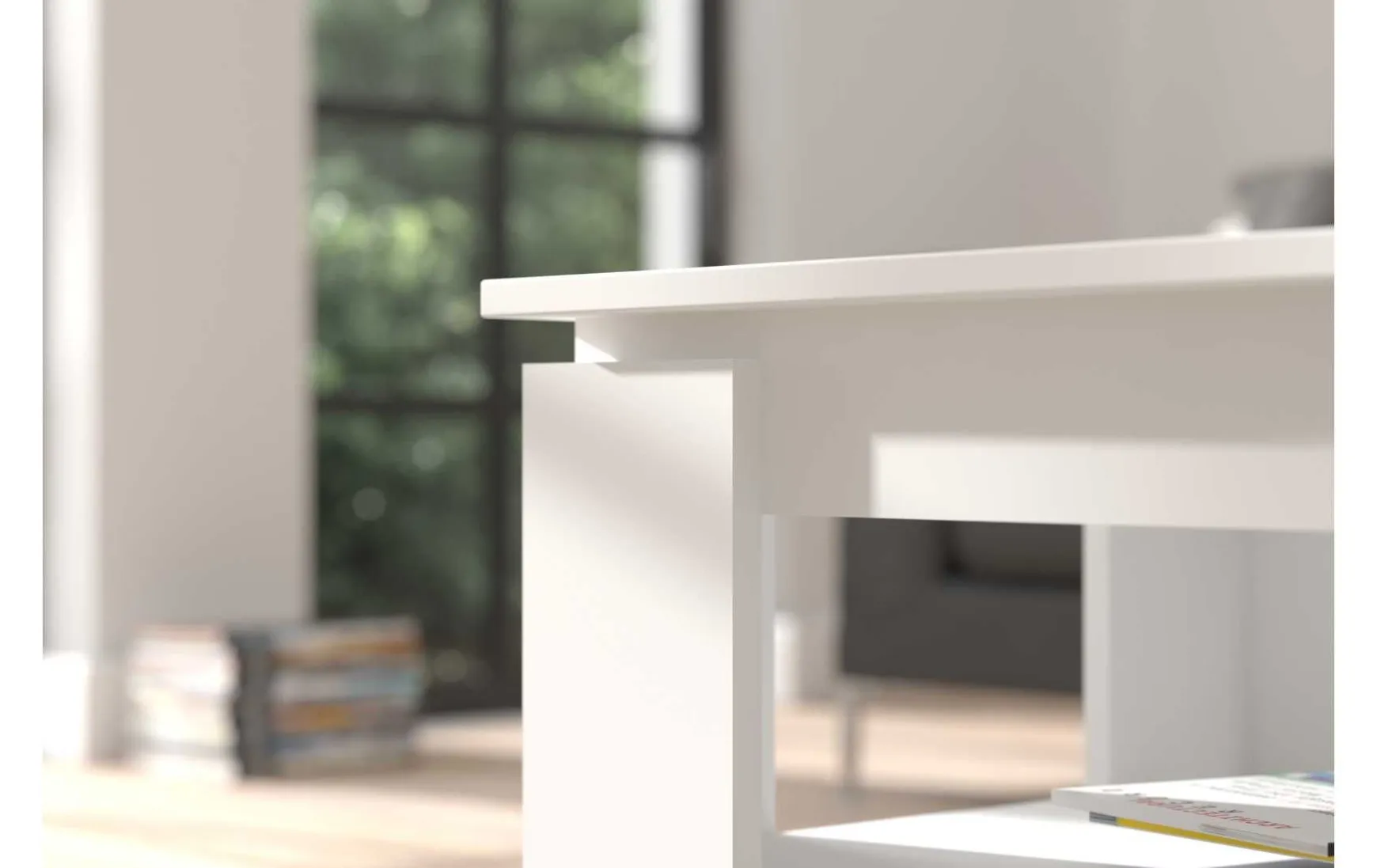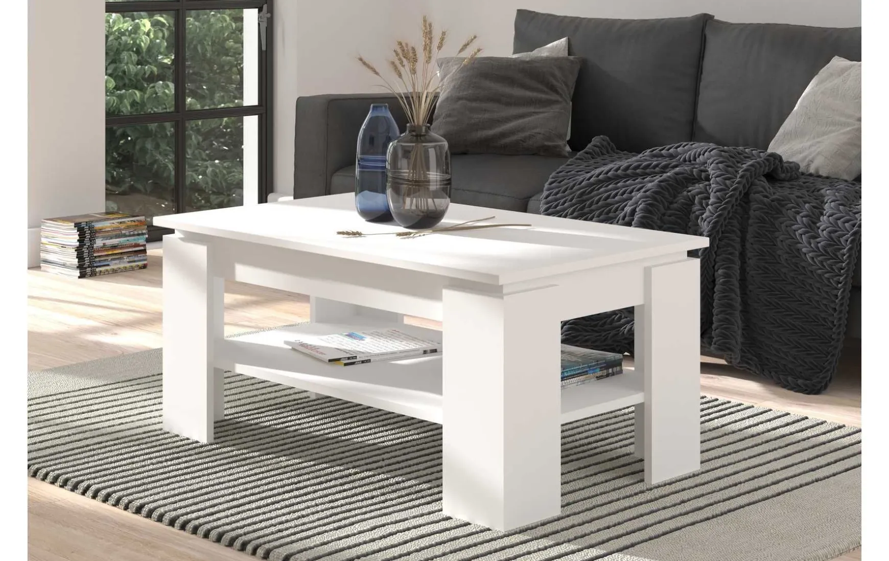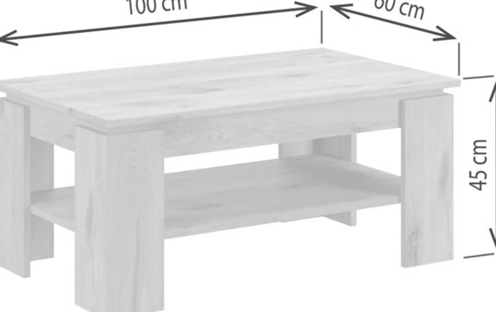 Dieser praktische Couchtisch in weißem Dekor überzeugt durch sein schlichtes, zeitloses Design und hohe Alltagstauglichkeit. Die rechteckige Form mit Maßen von ca. 100 × 45 × 60 cm (B/H/T) bietet ausreichend Ablagefläche, ergänzt durch eine zusätzliche Ablage für Zeitschriften oder Fernbedienungen. Dank der glatten, pflegeleichten Oberfläche lässt sich der Tisch einfach feucht abwischen. Mit einem Gewicht von ca. 24 kg steht er stabil und wird vormontiert geliefert, sodass er sofort einsatzbereit ist.
