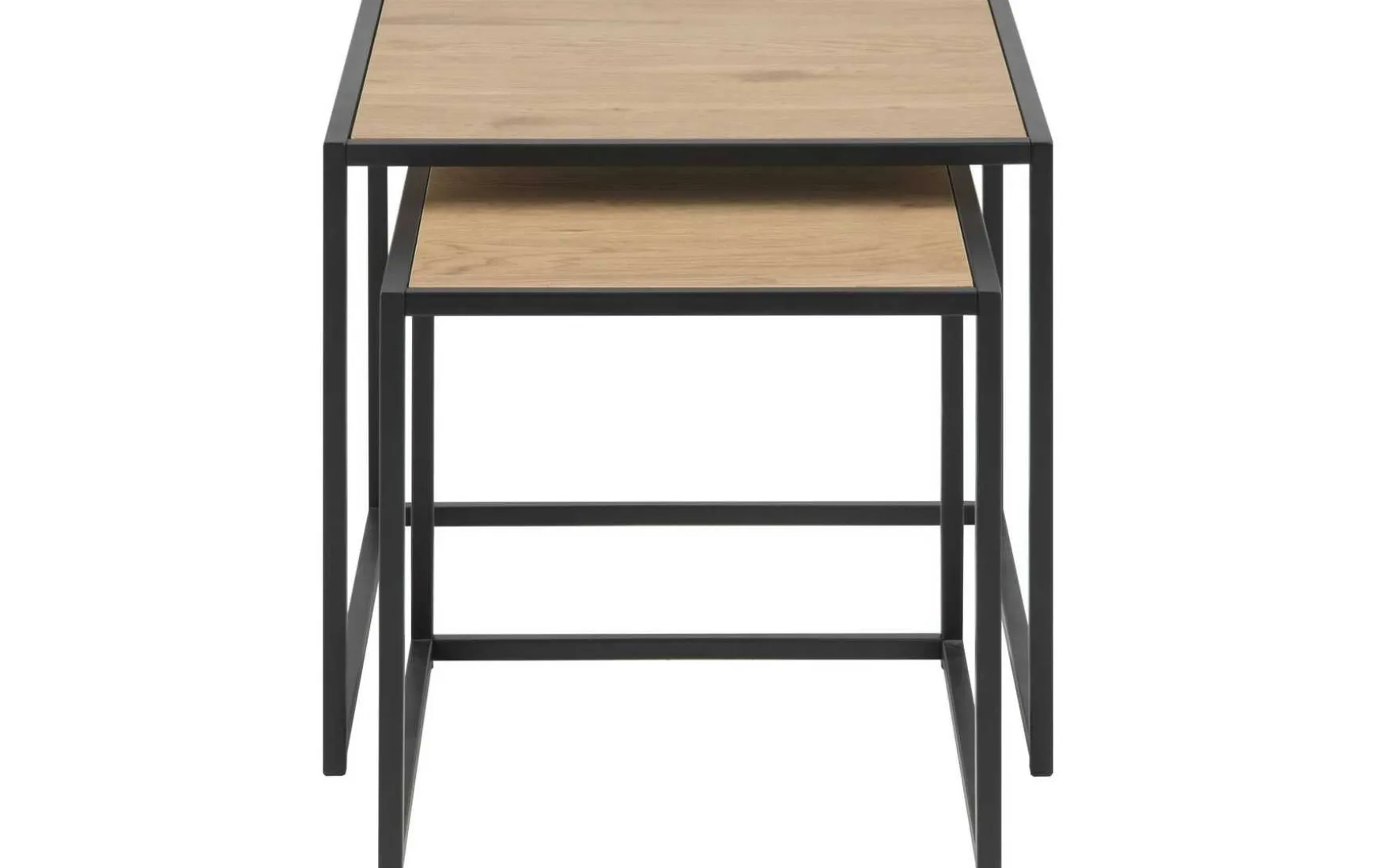 Dieses moderne Couchtisch-Set überzeugt durch sein zeitloses Design und praktische Vielseitigkeit. Die Deckplatten in Wildeiche-Nachbildung setzen einen warmen, natürlichen Akzent, während das schwarze Metallgestell für einen modernen Kontrast sorgt. Dank der zwei unterschiedlich großen Tische lässt sich das Set flexibel arrangieren und bei Bedarf platzsparend zusammenschieben – ideal für moderne Wohnräume.