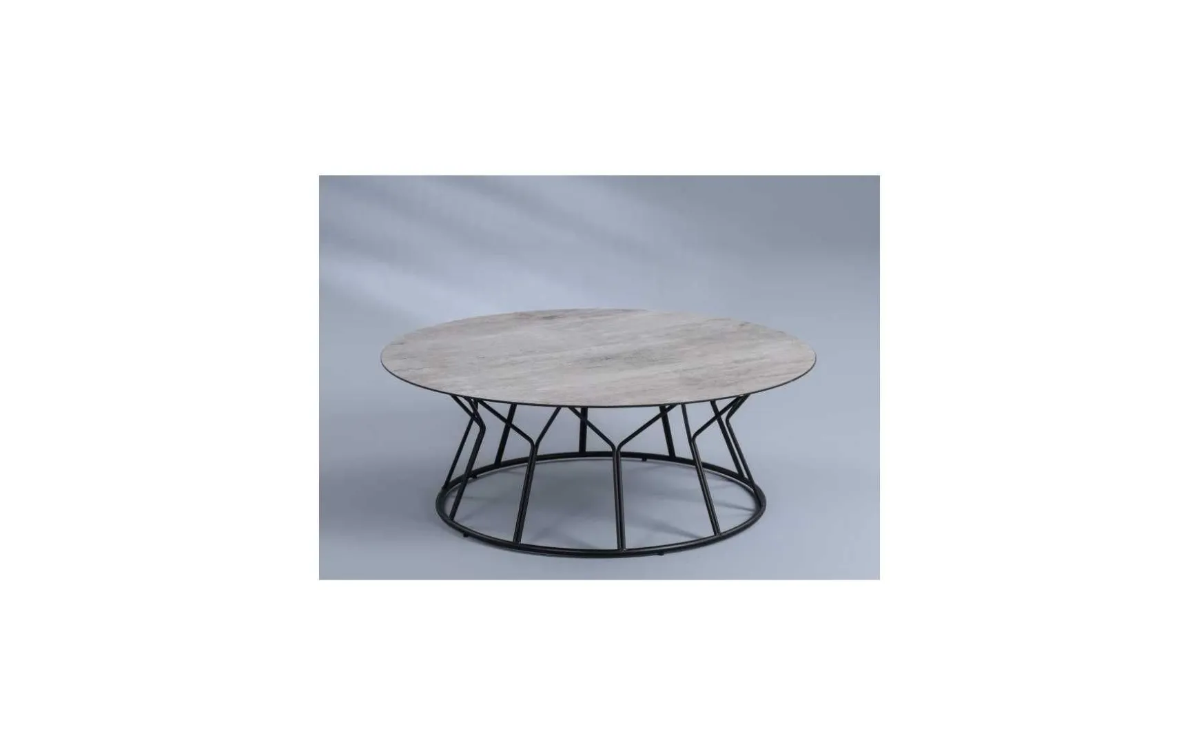 Dieser moderne Couchtisch überzeugt mit einer eleganten Kombination aus hochwertiger Sicherheitsglasplatte in Keramikoptik und einem stabilen Metallgestell in schwarz matt. Die runde Form mit einem Durchmesser von ca. 90 cm verleiht dem Tisch eine harmonische Ausstrahlung und macht ihn zum stilvollen Mittelpunkt im Wohnbereich. Dank der pflegeleichten Materialien eignet sich der Couchtisch ideal für den täglichen Gebrauch.