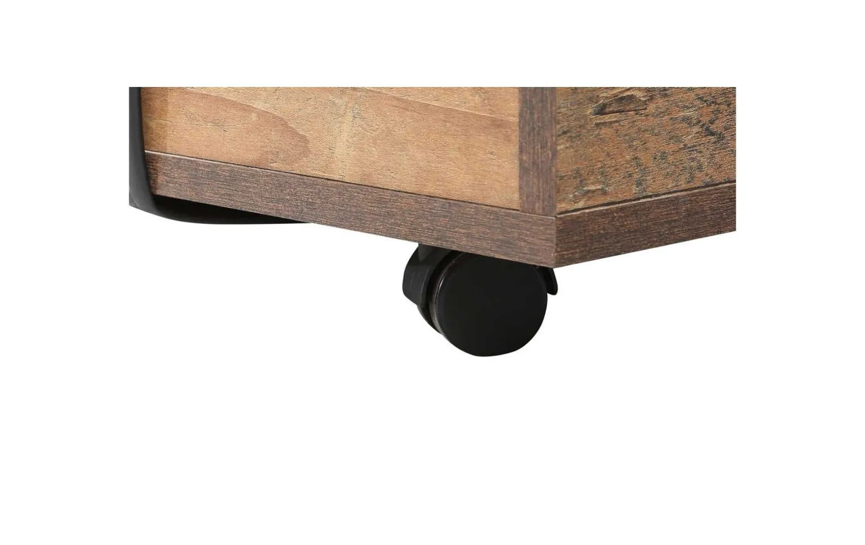 Dieser Couchtisch ist äußerst praktisch und trendy und erinnert an alte Holzkisten. Dieses rechteckige Spanplattenmöbel bietet dank einer großen Schublade, die sich ideal zum Aufbewahren von Zeitschriften und kleinen Accessoires eignet, ein beträchtliches Stauvolumen. Entworfen, um das Wohnzimmer zu strukturieren und gesellige Momente zu vervielfachen, bietet es ein großes Tablett, das sich perfekt zum Präsentieren von Dekorationsgegenständen eignet. Leicht zu reinigen