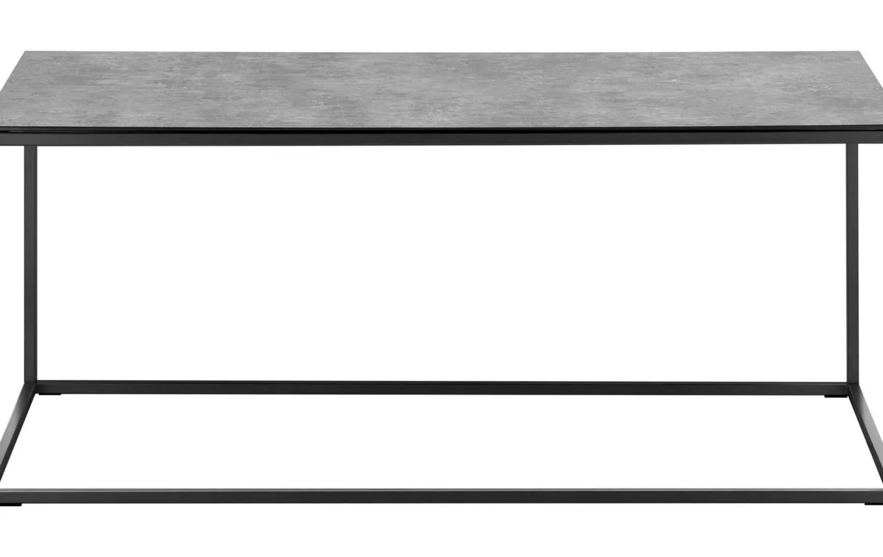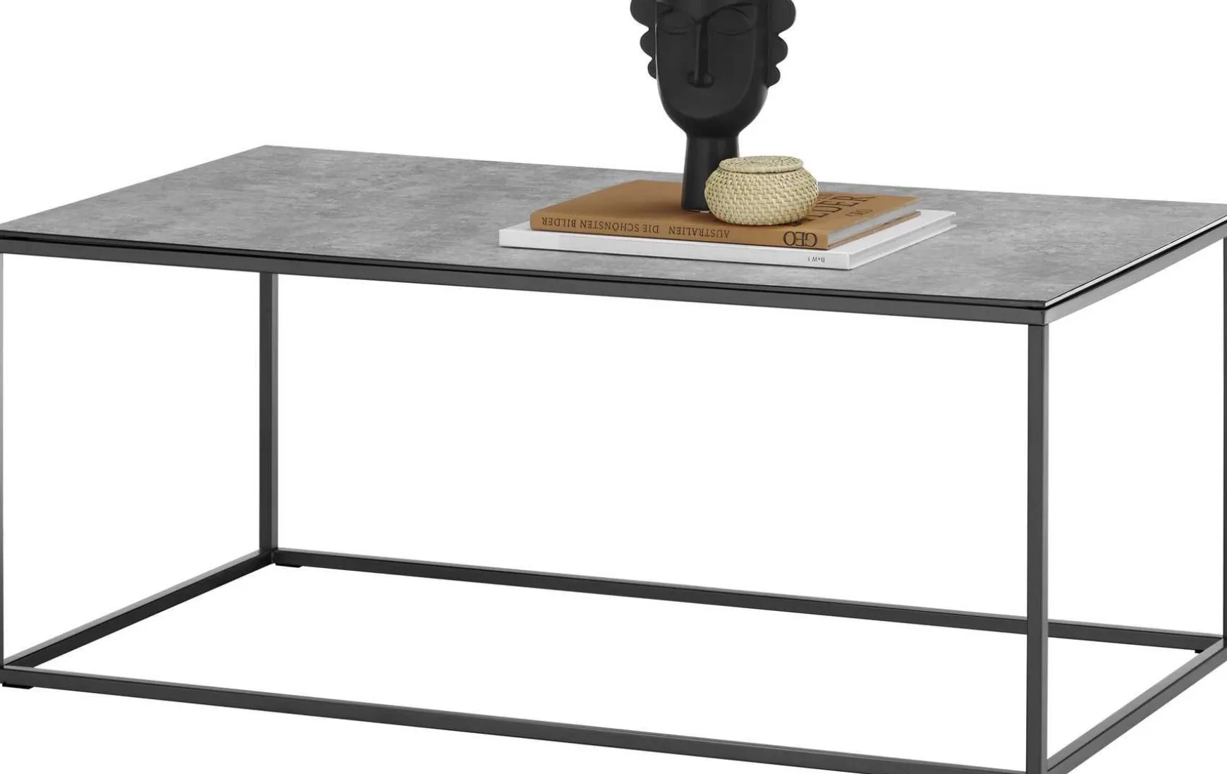 Dieser moderne Couchtisch überzeugt durch seine elegante Tischplatte in grauer Keramikoptik aus Glas/Melamin und ein klares, zeitgemäßes Design. Das schwarz pulverbeschichtete Metallgestell sorgt für Stabilität und setzt einen stilvollen Kontrast zur edlen Oberfläche. Mit seinen großzügigen Maßen bietet der Tisch ausreichend Platz für Getränke, Snacks oder Dekoration und wird zum funktionalen Mittelpunkt Ihres Wohnbereichs.