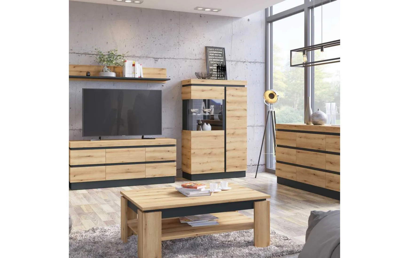 Dieser Couchtisch inkl. Schublade überzeugt durch sein modernes und funktionales Design. Mit einer großzügigen Stellfläche bietet er ausreichend Platz für Deko, Zeitschriften oder Getränke. Die Kombination aus braunen und grauen Tönen passt ideal zu unterschiedlichen Wohnstilen, während das melaminbeschichtete Material für eine pflegeleichte und langlebige Oberfläche sorgt. Perfekt für verschiedene Räume geeignet.