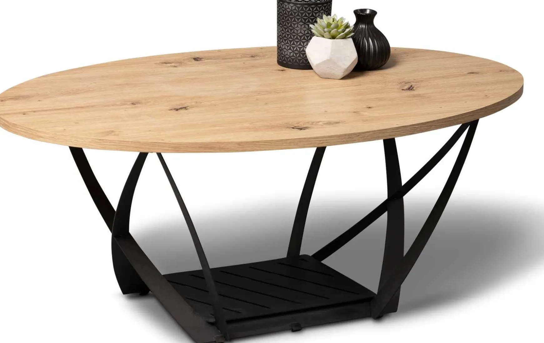 Dieser moderne Couchtisch überzeugt durch eine gelungene Kombination aus natürlicher Holzoptik und markantem Metallgestell. Die Tischplatte in Sonoma-Eiche-Optik bringt Wärme in den Wohnbereich, während das schwarze Metallgestell für einen zeitgemäßen, stabilen Look sorgt. Mit seinen Maßen von ca. 100 x 60 x 40 cm bietet der Couchtisch ausreichend Ablagefläche für den Alltag und fügt sich harmonisch in moderne Wohnkonzepte ein. Online reservierbar und ideal für die Selbstabholung, ist dieser Tisch eine stilvolle Ergänzung für jedes Wohnzimmer.
