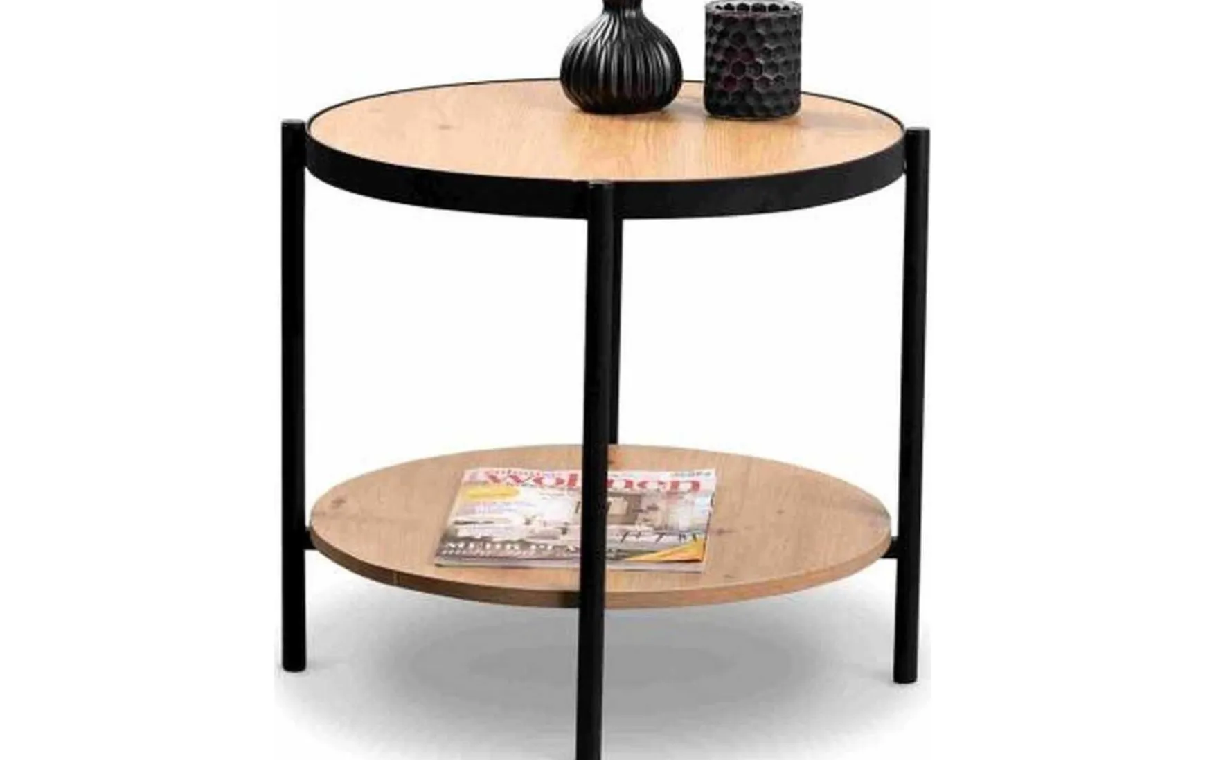 Moderner Beistelltisch mit MDF-Tischplatte im Artisaneiche-Dekor. Mit 52 cm Durchmesser und 45 cm Höhe fügt er sich stilvoll und funktional in jedes Wohnkonzept ein.