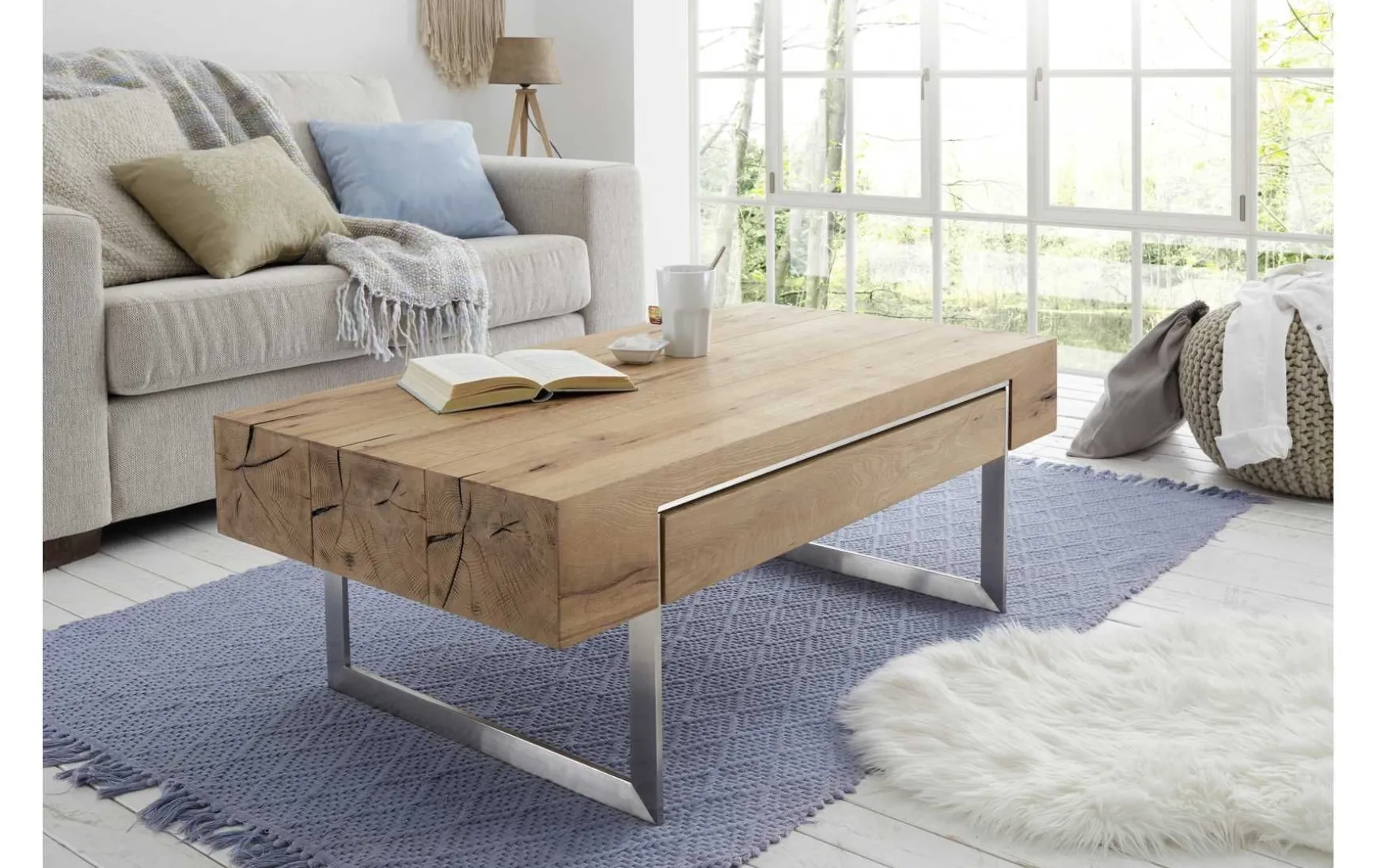 Dieser (Couchtisch-)Trend stellt alles auf den Kopf! Dieser Wohnzimmertisch dreht die gewohnte Materialanordnung um!