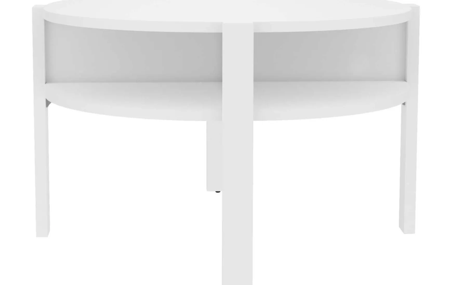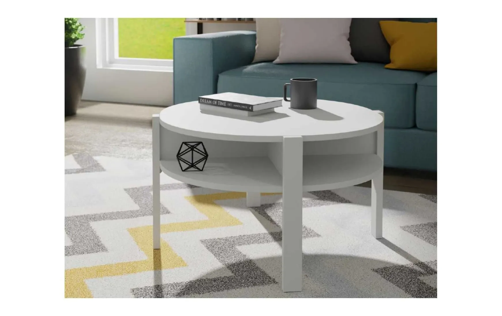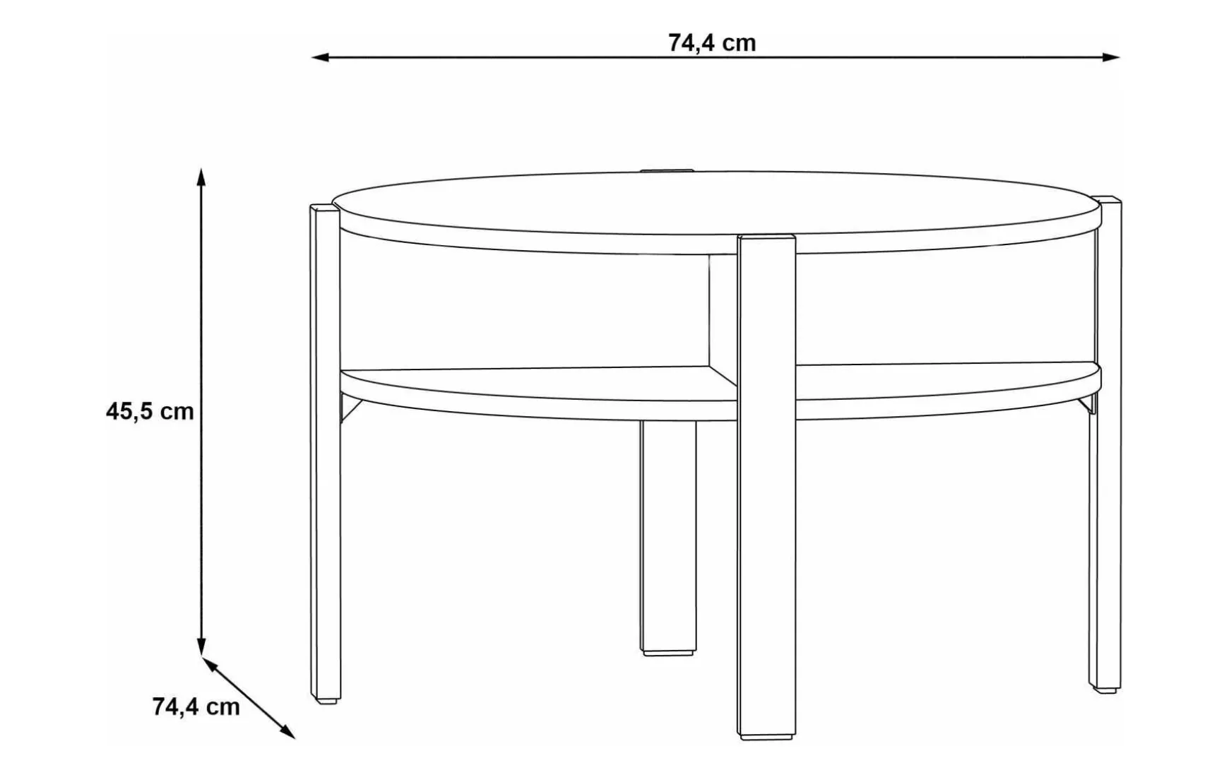 Der runde Couchtisch mit praktischen Regalen unter der Tischplatte ist ein perfekter Vorschlag für ein Wohnzimmer – schlicht, aber sehr stilvoll. Es ist in bis zu fünf universellen Dekoren erhältlich, sodass Sie es problemlos mit den übrigen Möbeln im Innenraum kombinieren können.
