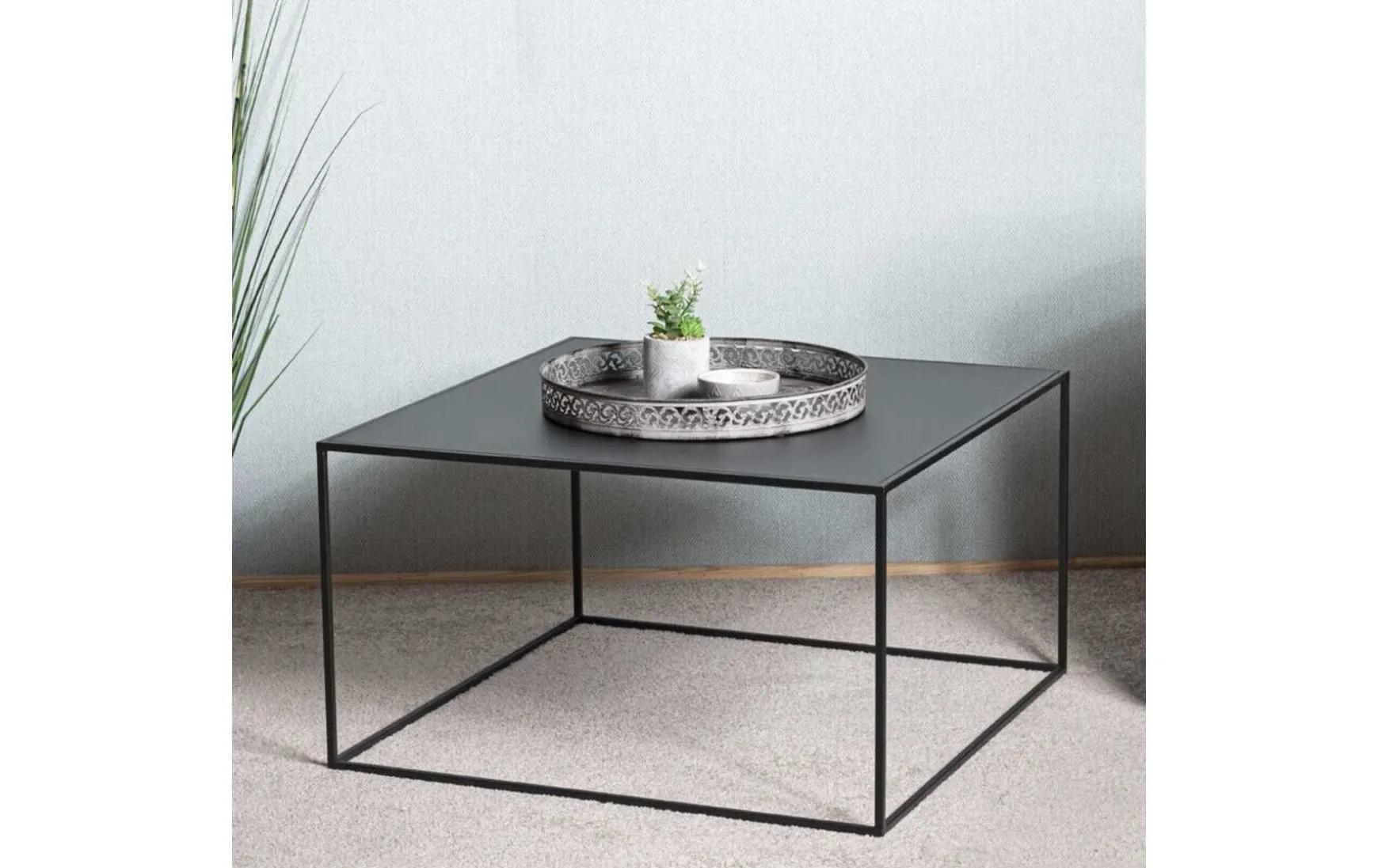 Dieser quadratische Couchtisch überzeugt durch sein modernes Design komplett aus schwarz lackiertem Metall. Mit einer zusätzlichen Ablagefläche bietet er praktischen Stauraum für Zeitschriften oder Accessoires. Dank der pflegeleichten Oberflächen lässt sich der Tisch mühelos mit einem feuchten Tuch reinigen und eignet sich ideal für den täglichen Gebrauch.