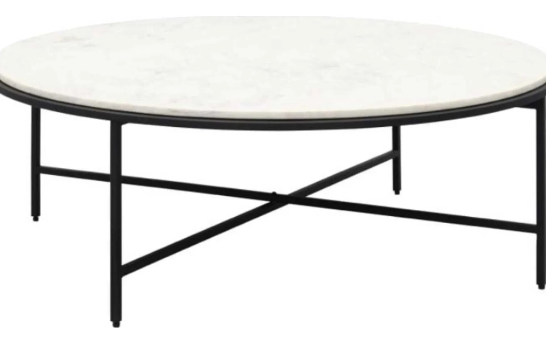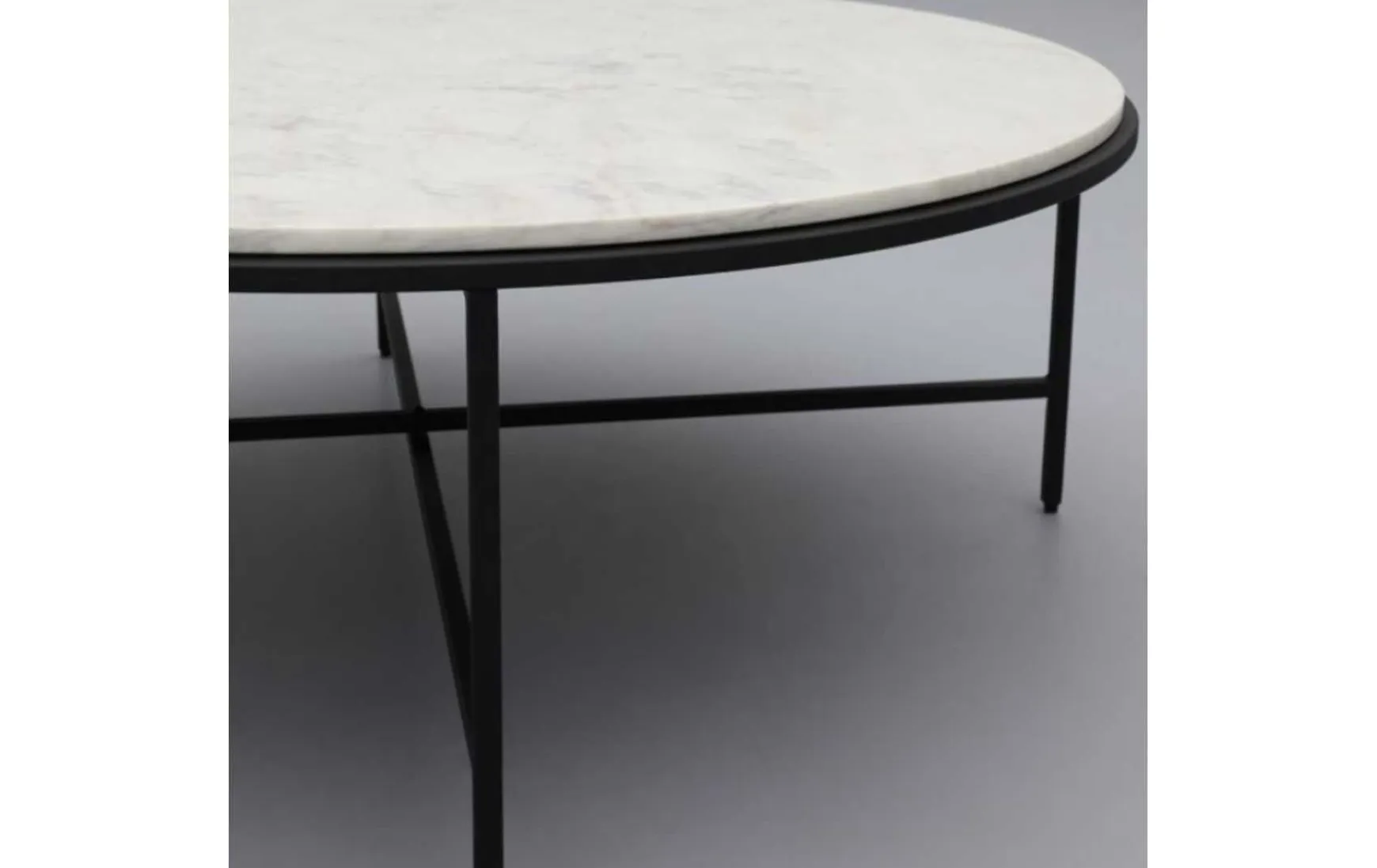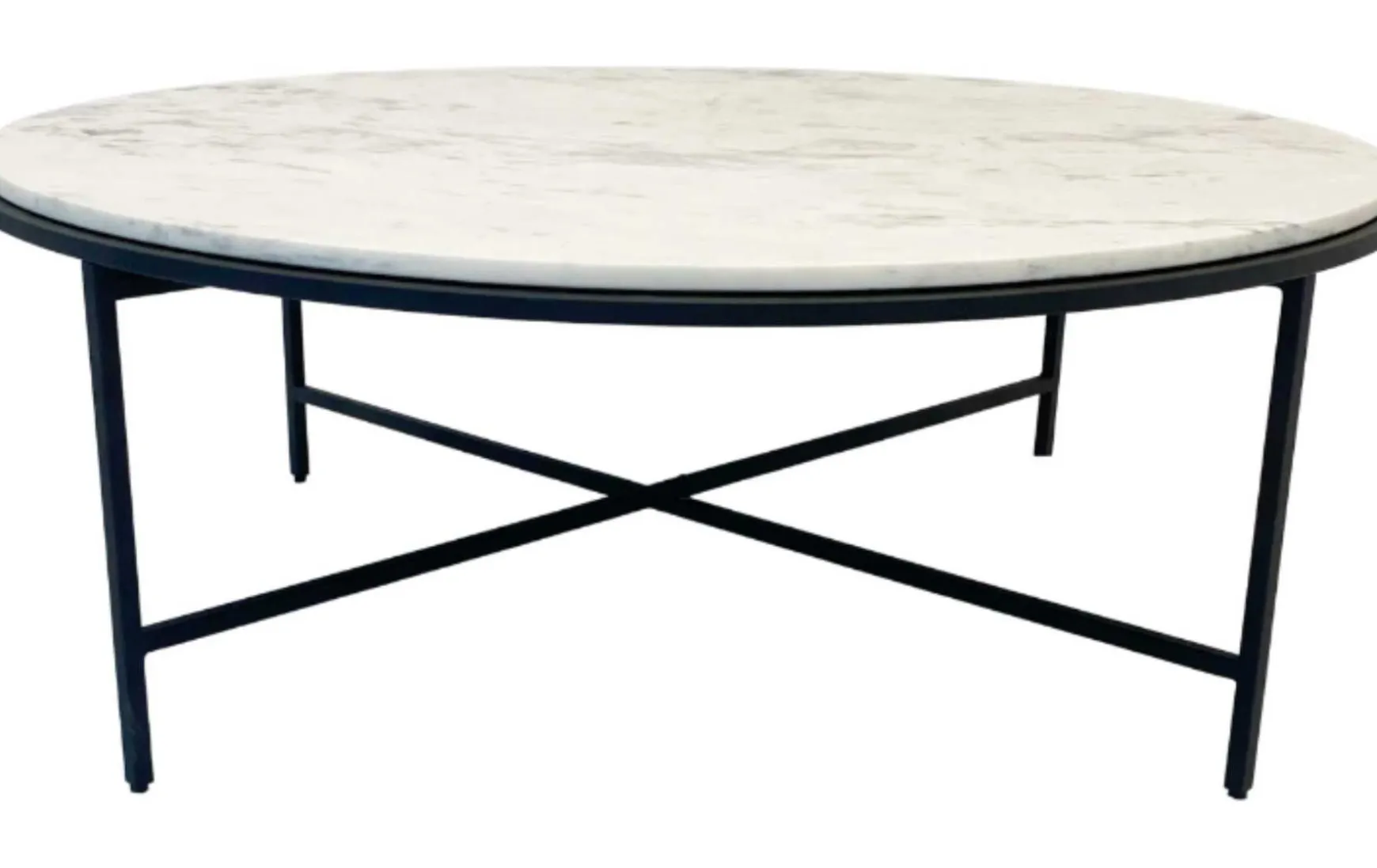 Suchen Sie einen attraktiven Couchtisch? Dann könnte dieser Couchtisch genau das sein, was Sie suchen. Der niedrige Couchtisch mit seiner weißen Marmorplatte und einem Untergestell aus schlanken Beinen passt gut zu verschiedenen Wohnstilen. Er ist 40 cm hoch, hat einen Durchmesser von 100 cm.