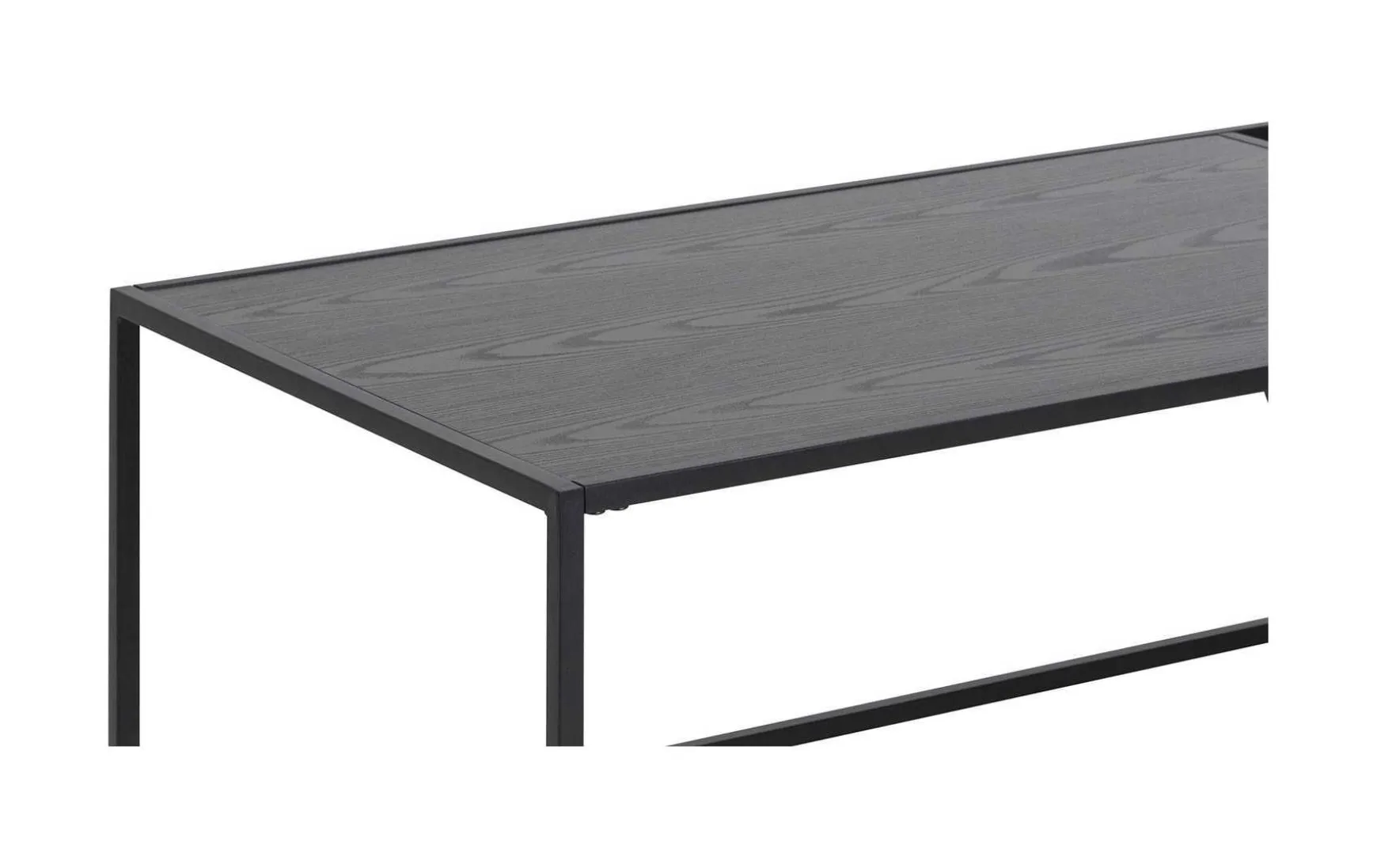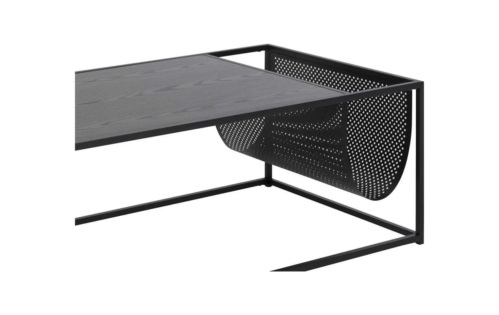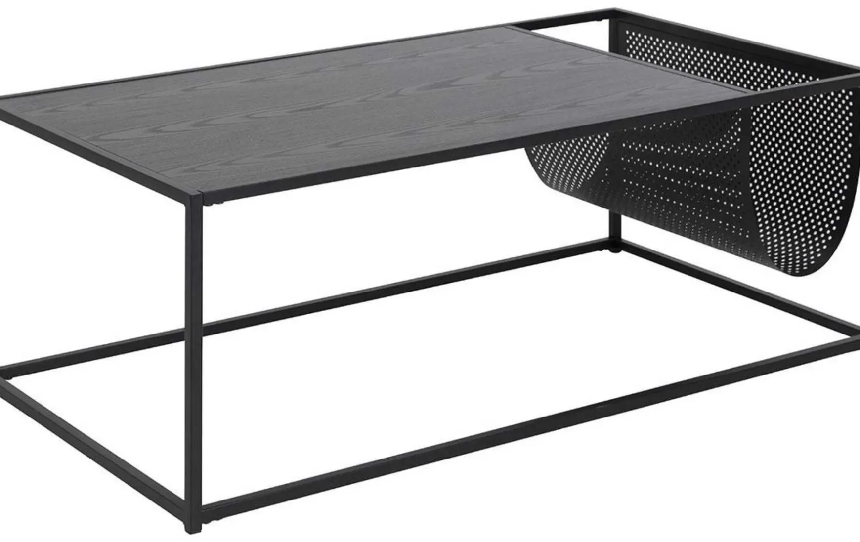 Elegant, modern und sehr praktisch zeigt sich dieser 110×60 cm große Couchtisch. Damit könnte er vielleicht zu Ihrem neuen Lieblingsstück werden. Sein schlankes, pulverbeschichtetes Metallgestell und die schwarze Ablagefläche harmonieren wunderbar zu modernen und industriellen Wohneinrichtungen. Er ist eine perfekte Ergänzung zur Couch, denn der Wohnzimmertisch ist nicht nur eine nützliche Ablage für Snacks, Getränke und die Fernbedienung. Der Tisch verfügt zusätzlich über eine praktische Zeitungshalterung, wo Sie Ihre Magazine aufbewahren können. Das macht das Möbelstück einzigartig und verleiht dem Raum eine individuelle Note.