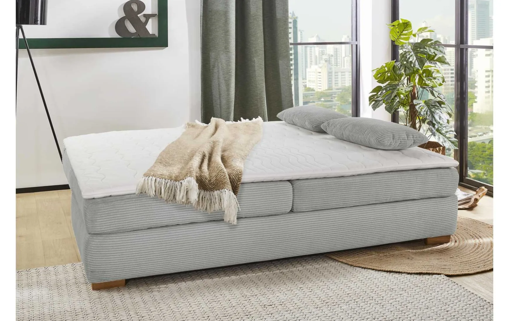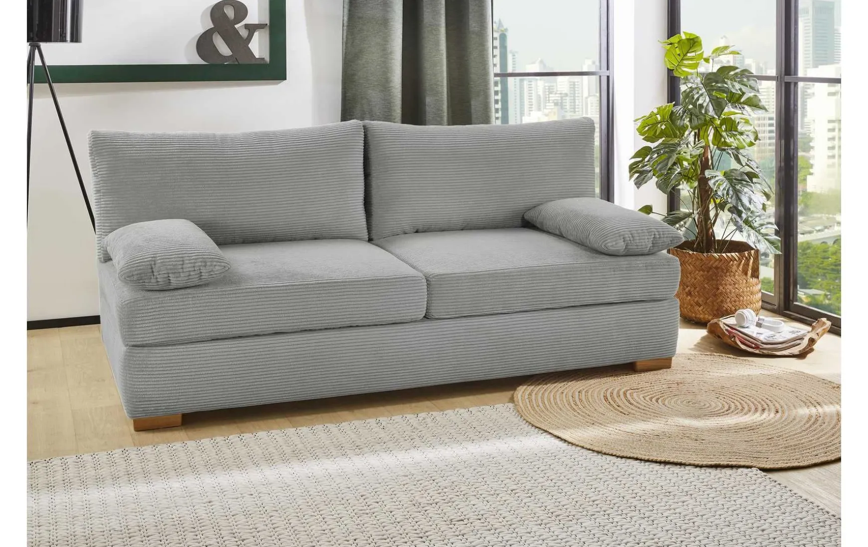 Dieses moderne Dauerschläfer-Sofa überzeugt durch hohen Schlafkomfort, funktionales Design und praktischen Stauraum. Dank integrierter Schlaffunktion lässt sich das Sofa im Handumdrehen in eine großzügige Liegefläche von ca. 160 x 200 cm verwandeln und eignet sich ideal für den täglichen Gebrauch. Der hochwertige Tonnentaschenfederkern in Matratze und Rückenpolster sorgt für optimale Unterstützung und erholsamen Schlaf. Ein inkludierter Topper erhöht den Liegekomfort zusätzlich. Der geräumige Bettkasten bietet praktischen Stauraum für Decken und Kissen. Der graue Feincord-Stoff verleiht dem Sofa eine moderne, gemütliche Optik, während die massiven Eichefüße in Holzfarbe einen natürlichen Akzent setzen. Vormontiert geliefert, ist der Dauerschläfer schnell einsatzbereit.