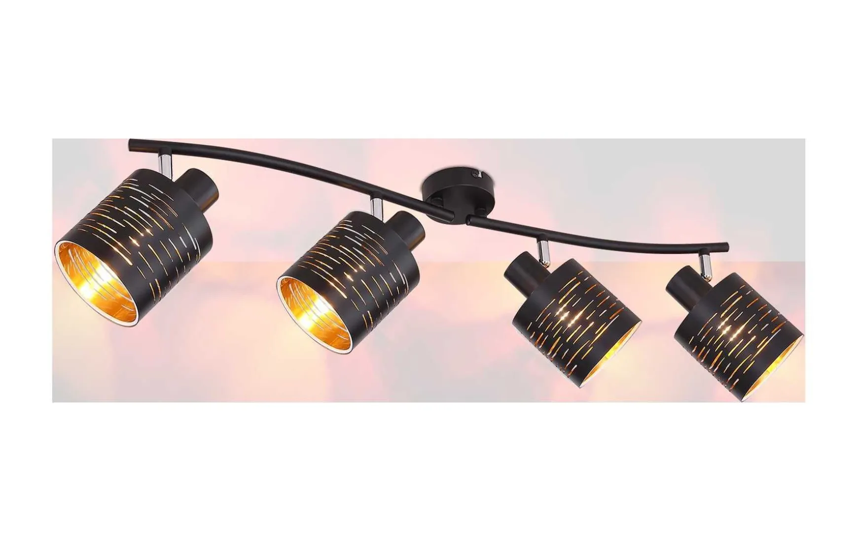 Die 72cm lange Lampe verfügt über vieri Strahler, welche mit Dekorstanzungen versehen sind.