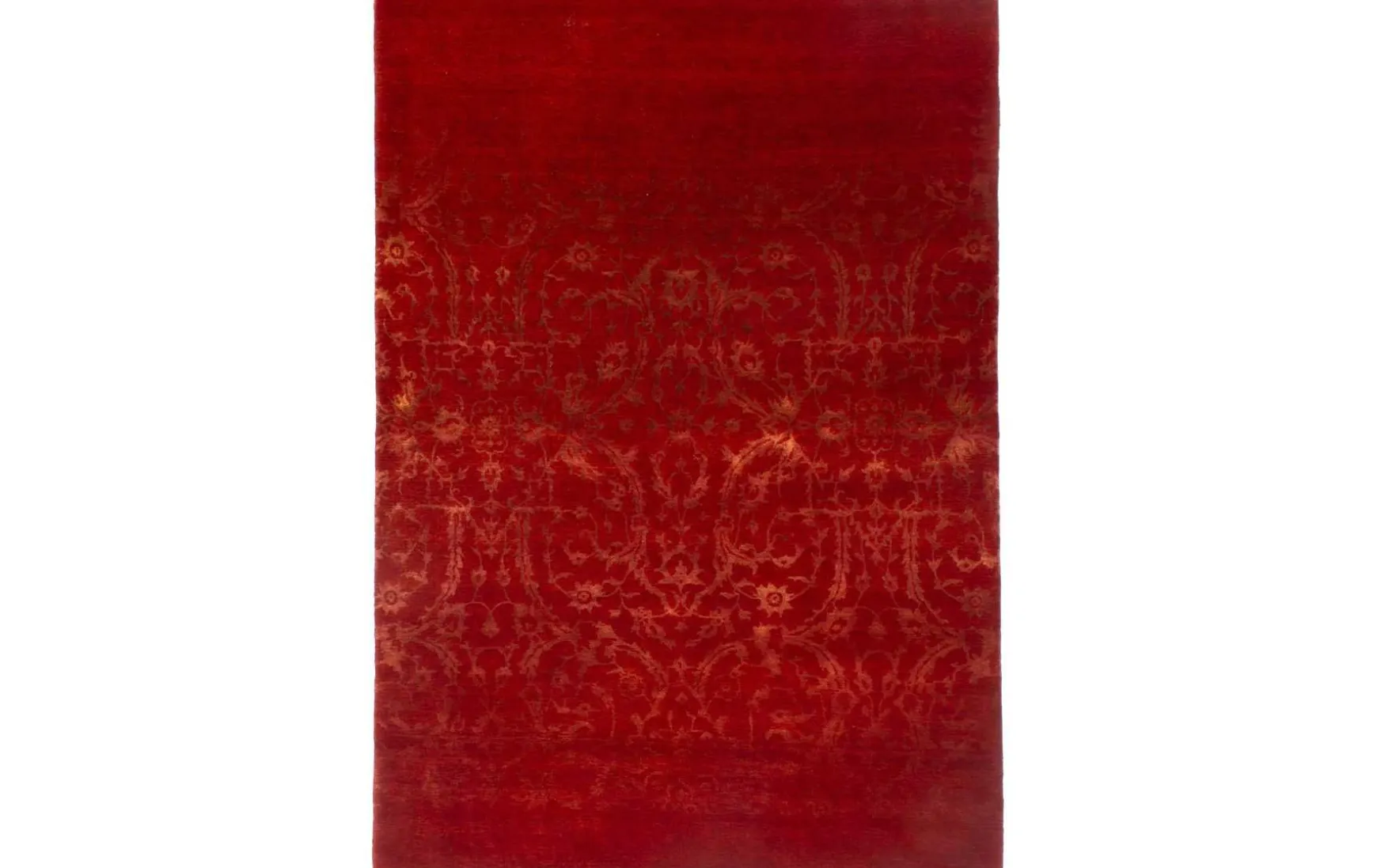 Handgeknüpfter Designer-Teppich aus Indien mit modernen Applikationen und feinem Flor aus 100% Wolle mit Bambusseide. Passend für jeden Wohnraum.