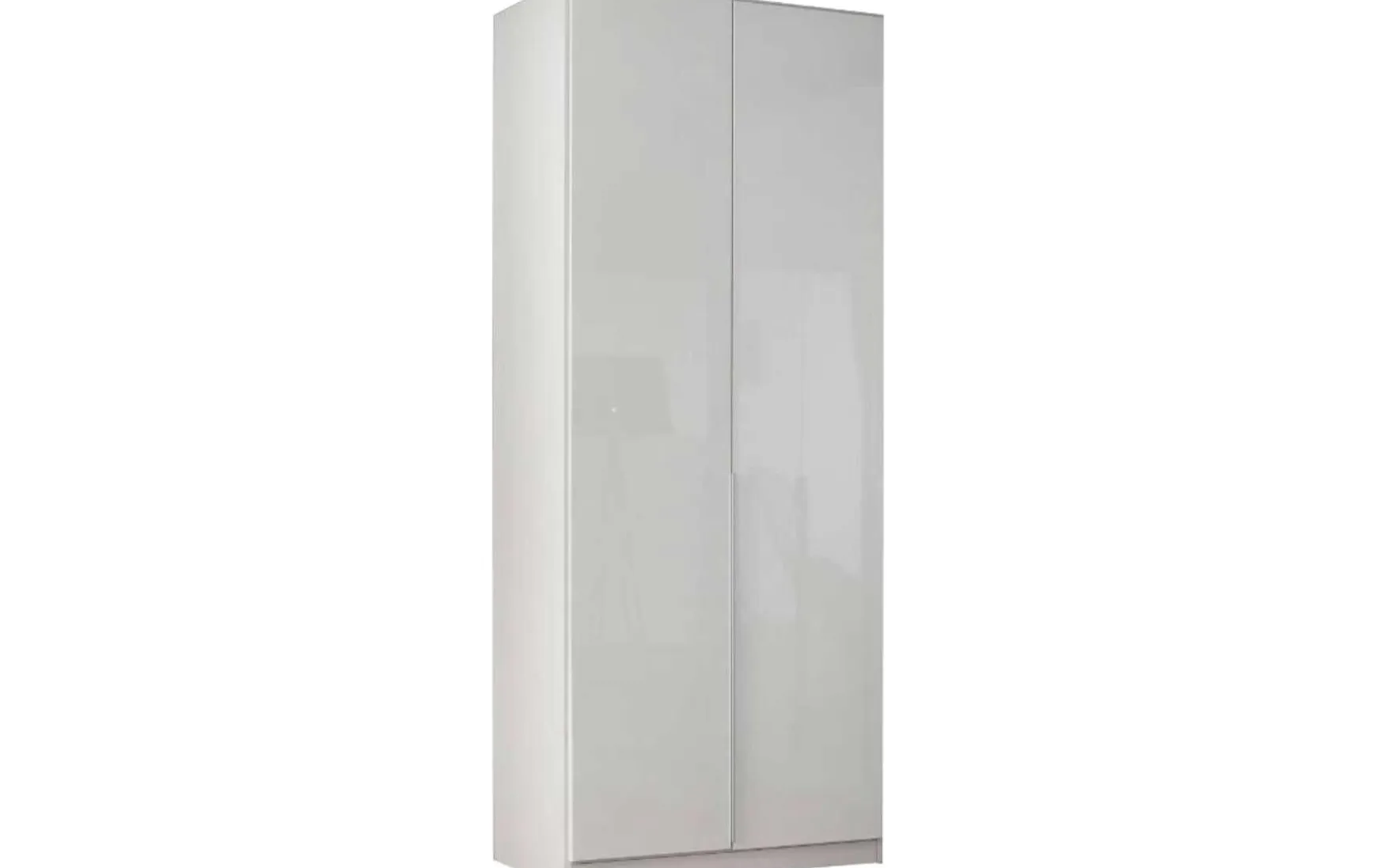 Mit einem Korpus in Alpinweiß, der Front in Hochglanzweiß und alufarbenen Griffen ist dieser Drehtürenschrank 2-türig perfekt für das trendige Schlafzimmer.