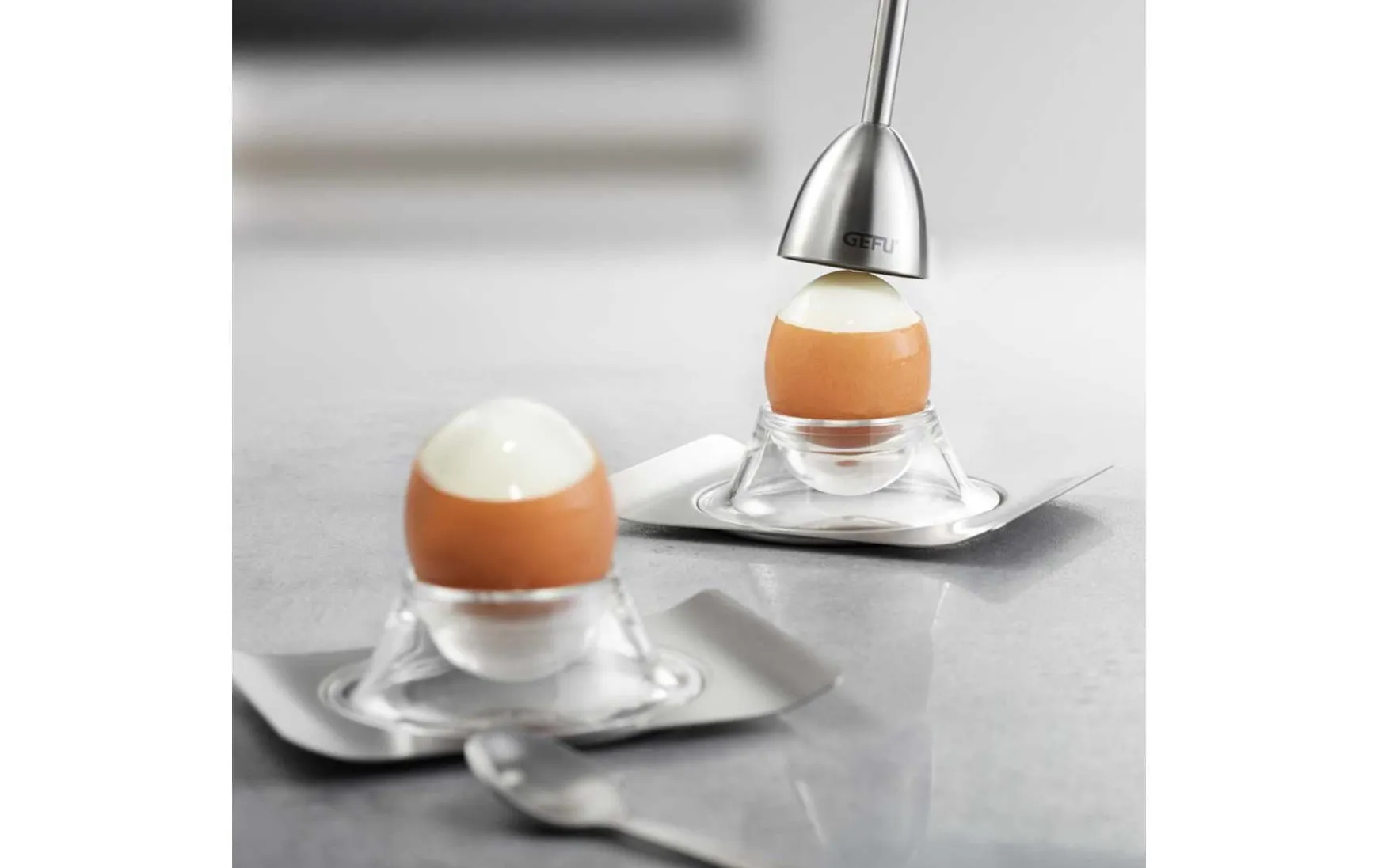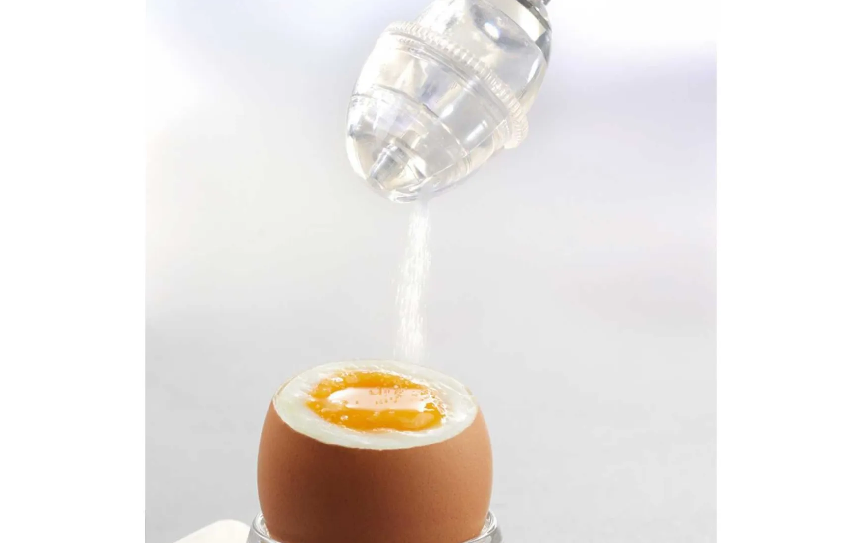 Mit diesem Eierköpfer inkl. Salzstreuer haben Sie den richtigen Helfer, um Ihr Frühstücksei zu öffnen. Sie setzen den Eierköpfer auf dem Frühstücksei auf, ziehen die Kugel nach oben und lassen sie dann einfach zurückschnellen. Das Ei bekommt dadurch rundherum eine Sollbruchstelle. Der Eierköpfer wird seitlich weggekippt, der Eierschalenkopf kann abgehoben werden und das Ei ist fertig zum Verzehr. Der Clou: der integrierte Salzstreur, der einstellbar für wahlweise kleinere oder größere Salzmengen ist. Praktischer Weise ist dieser Salzstreuer auch verschließbar.