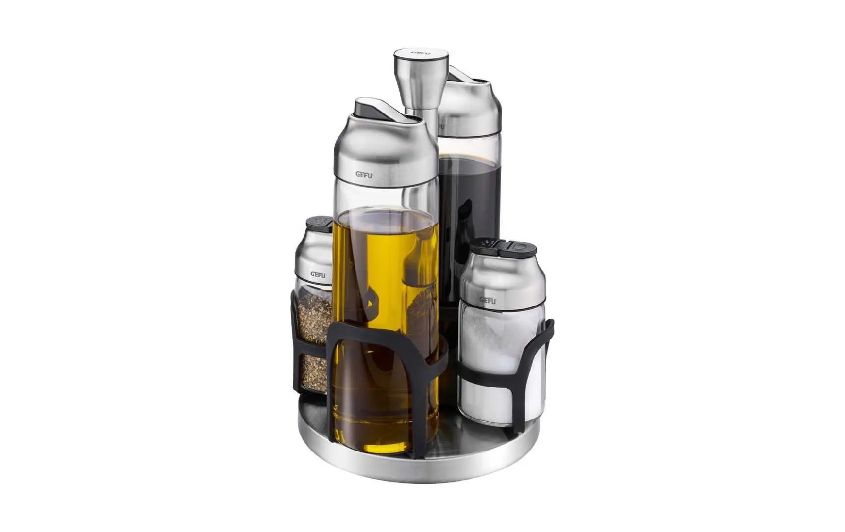 Dieses stilvolle Duo vereint in seinem Drehkarussell Funktionalität mit Eleganz und ist ein unverzichtbares Accessoire für jeden guten Gastgeber.