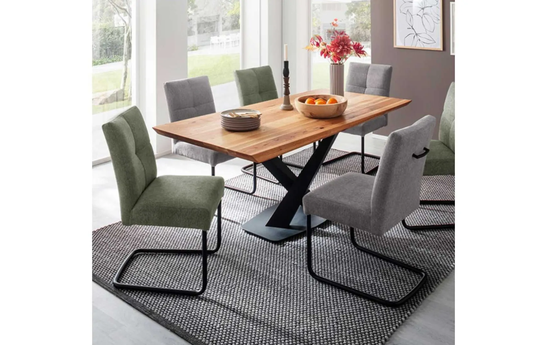 Entdecken Sie den Esstisch 90×180 für ein modernes und rustikales Ambiente in Ihrem Zuhause. Die Tischplatte aus massiver Wildeiche, geölt und mit einer durchgehenden Lamelle, verleiht diesem Tisch eine natürliche und hochwertige Ausstrahlung. Das Kreuzsäulen-Metallgestell in Mattschwarz pulverbeschichtet sorgt nicht nur für Stabilität, sondern setzt auch einen zeitgemäßen Akzent. Die gedrehte Baumkante verleiht dem Tisch eine individuelle Note. Holen Sie sich mit dem GRAVINA Esstisch ein Stück Natur in Ihr Esszimmer.