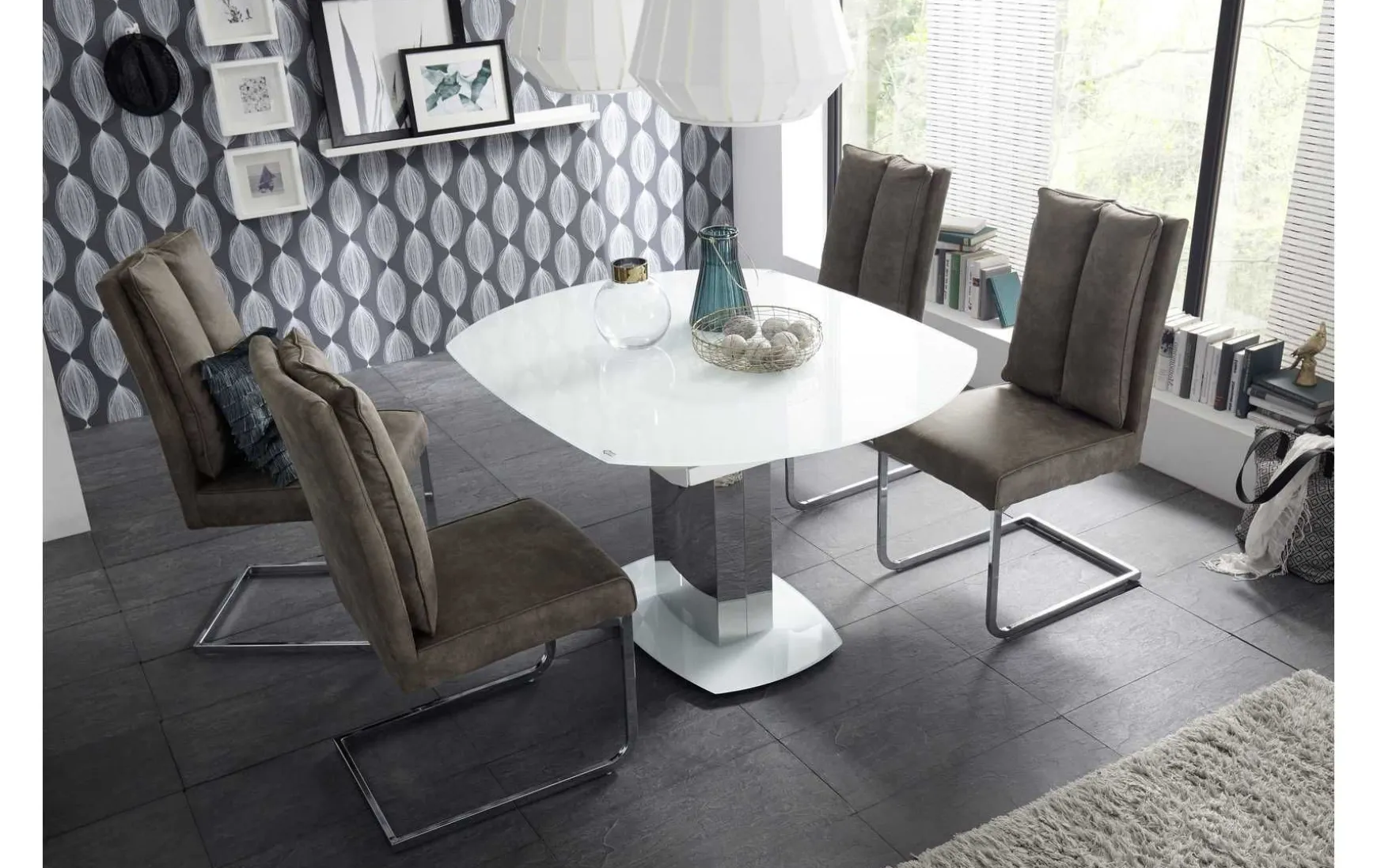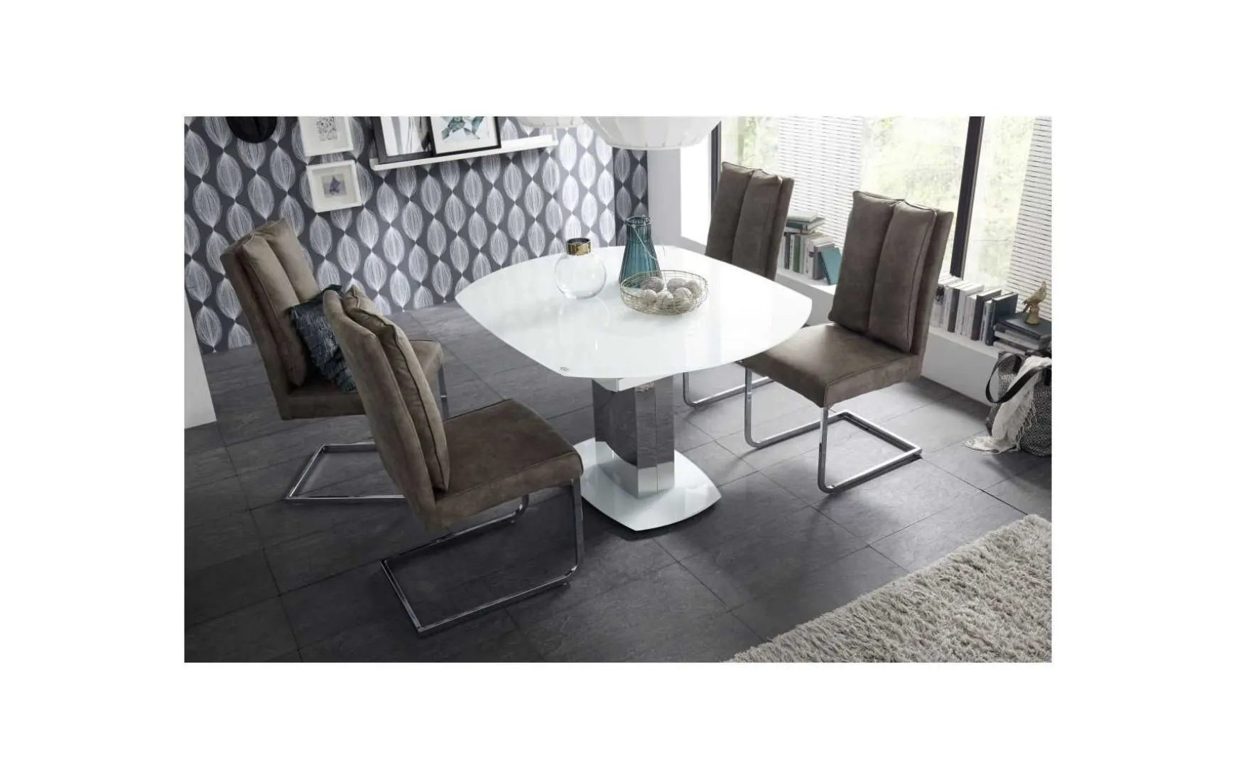 Dieser Esstisch überzeugt mit seiner am Anfang eher kompakt wirkenden Größe von ca 130 x 100 cm, ist aber ganz bequem und einfach auf eine Größe bis zu ca 190 x 100 cm ausziehbar. Die Tischplatte besteht aus 10 mm Sicherheitsglas welches einen eleganten Flair in Ihr Zuhause bringt. Schauen Sie vorbei und überzeugen Sie sich selbst.