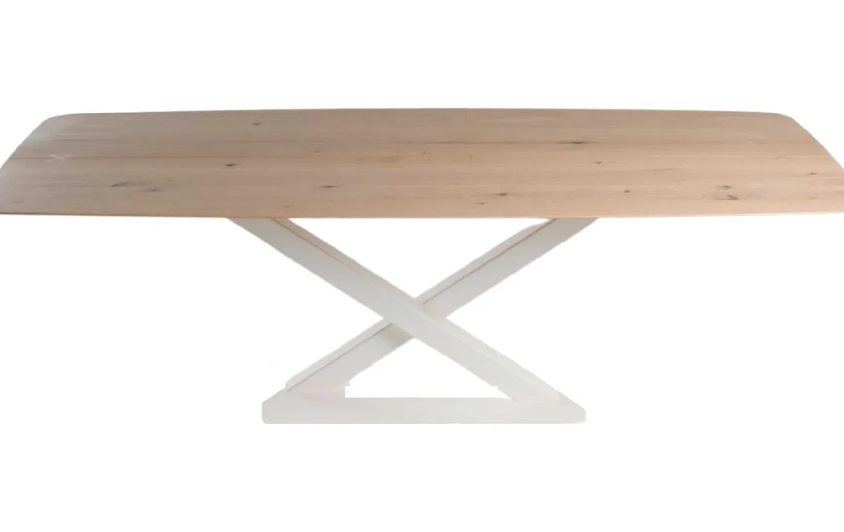 Der Esstisch ist ein absoluter Eyecatcher mit einem raffinierten Untergestell aus Stahl in Form eines unsymetrischen X. Diese auffallende Konstruktion verleiht dem Tisch seine außergewöhnliche und einzigartige Optik. Die ca. 3 cm schlanke und zierlich wirkende Tischplatte in Bootsform des Tisches in Massivholz ist mit der Kantenausführung Nr. 6 ausgeführt, was bedeutet, dass die Tischkante nach unten hin verjüngt ist. Es stehen verschiedenste Holzausführungen für die massive Tischplatte in geölter, oder aber auch lackierter Oberfläche zur Wahl. Wählen Sie die für Sie passende Tischlänge, aus den verschiedenen zur Verfügung stehenden Größen aus. Das markante Gestell des Esstisches können Sie in einer beliebigen Farbe aus der Lackkollektion in feinstruktur bestellen.