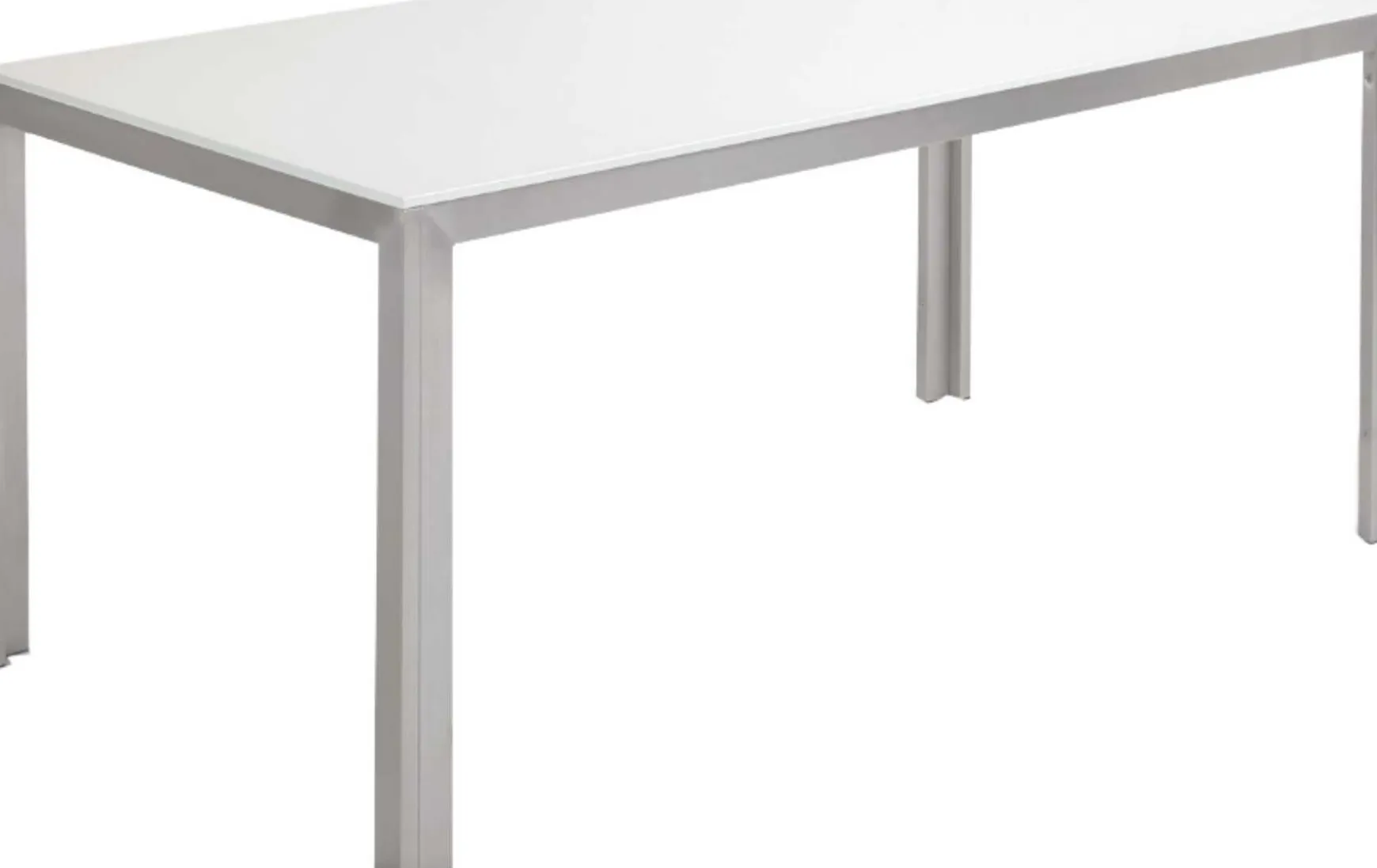 - Anmerkungen: Tischplatte: originelles Glas weiß, robustes Sicherheitsglas, Gestell: sehenswertes Vierfußgestell Edelstahl gebürstet, Tischplattenstärke: 12 mm