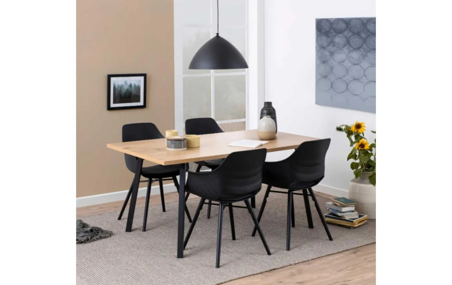 Dieser moderne und schlichte Esstisch steht fest mit 4 Beinen in jedem Esszimmer. Genießen Sie entspannte Stunden in geselliger Runde oder gönnen Sie sich zwischendurch eine Pause bei Kaffee und Kuchen, an diesem Tisch werden Sie gerne Platz nehmen. Hochwertige, perfekt verarbeitete Materialien überzeugen auf der ganzen Linie und die ansprechende Optik bereichert Ihren Wohnbereich charmant und stilvoll.