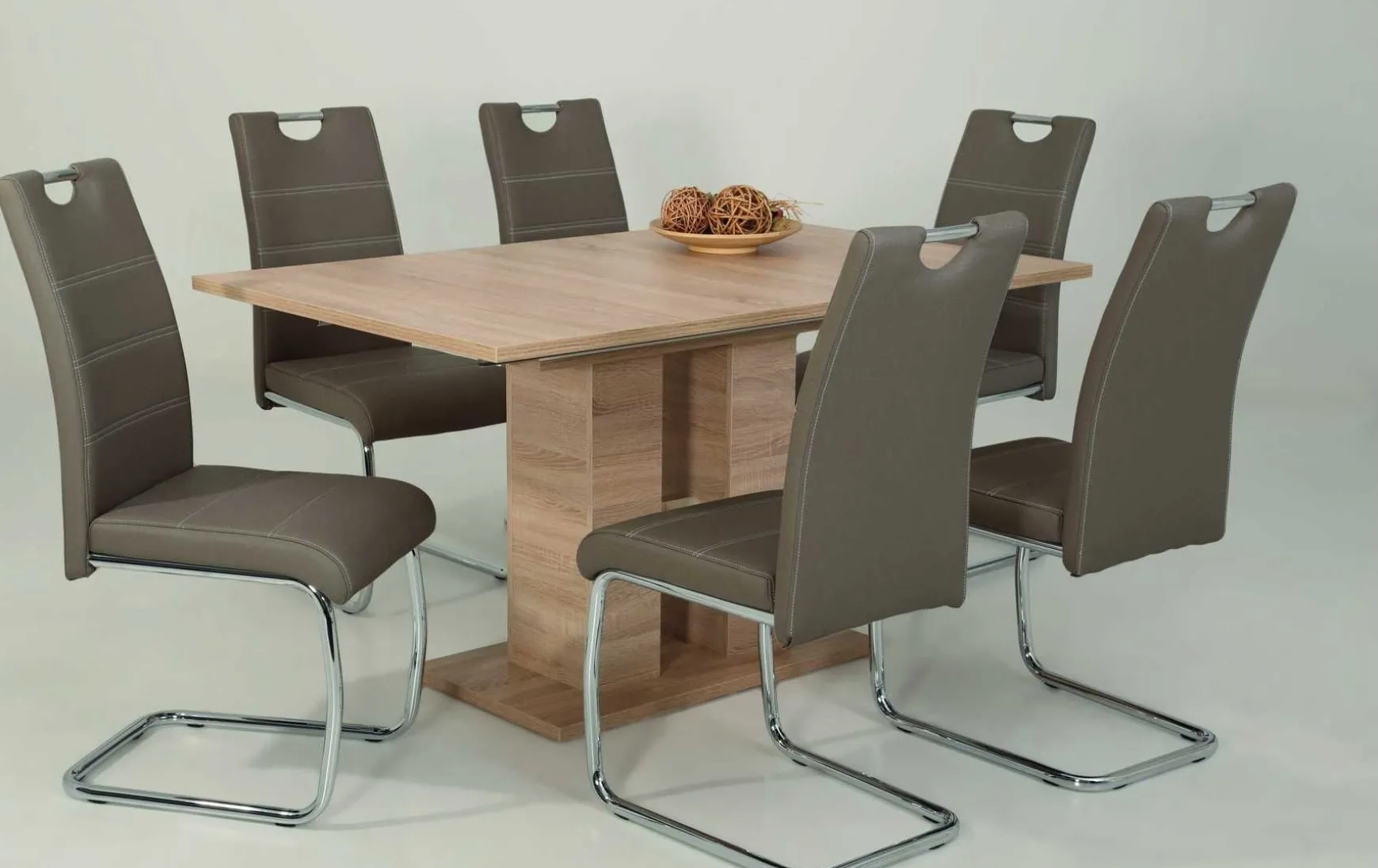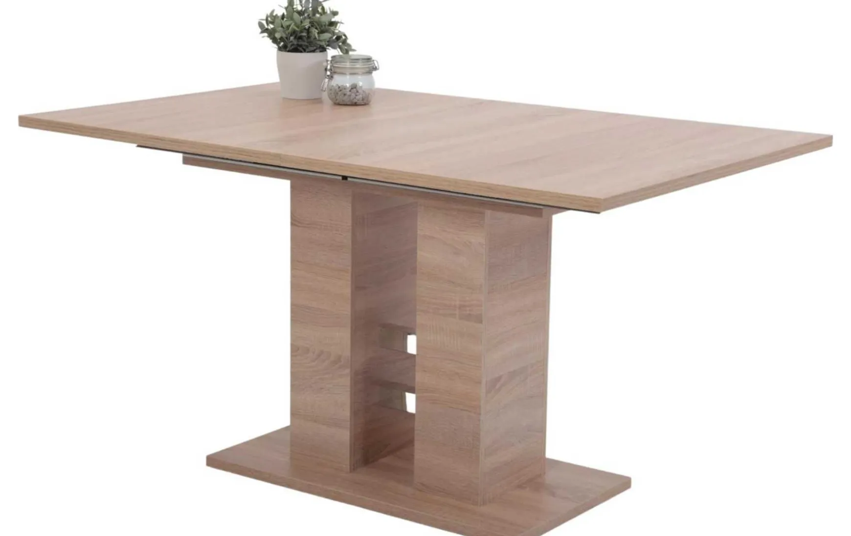 Der moderne Kulissentisch in Sonoma Eiche Dekor, ist mit einem sehr praktischen mittigen Synchron-Auszug und 2 Einlegeplatten versehen, um bei Bedarf die gewünschte Fläche zu erweitern. Dank den innenliegenden Einlegeplatten ist eine Erweiterung dieses Esstisches von 140 x 90 cm auf 220 x 90 cm möglich.