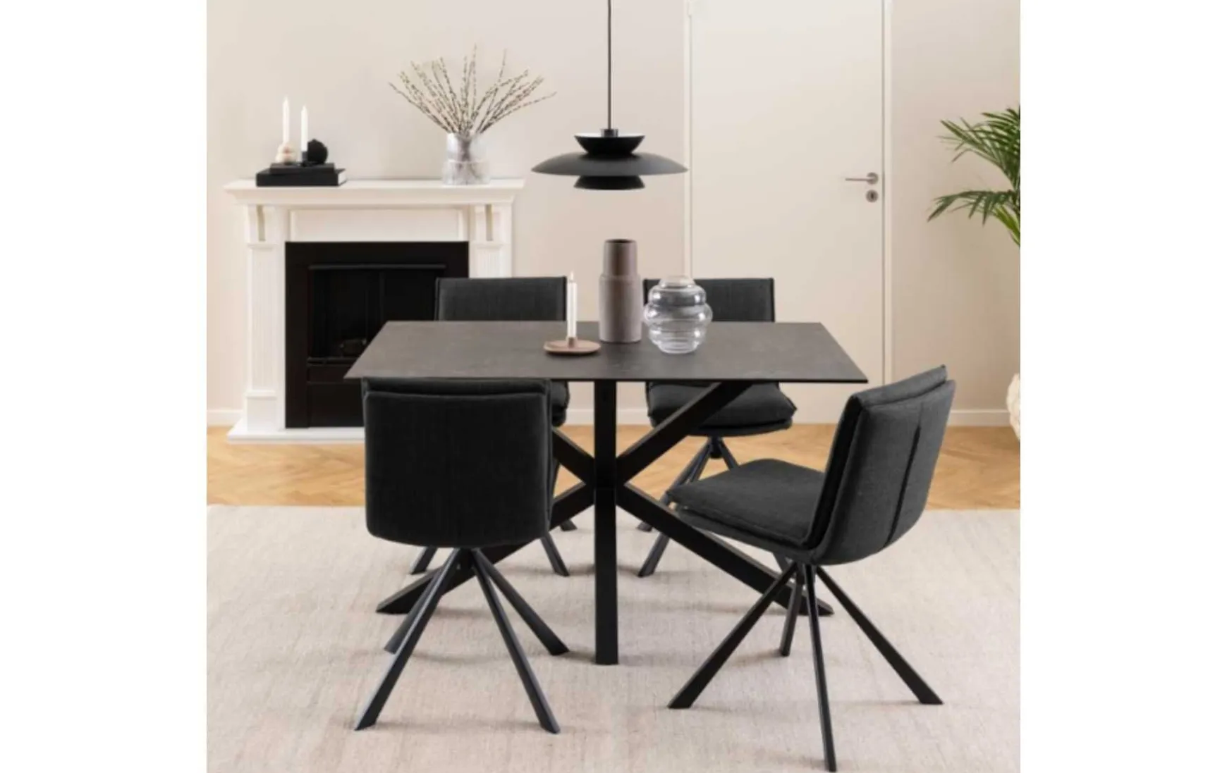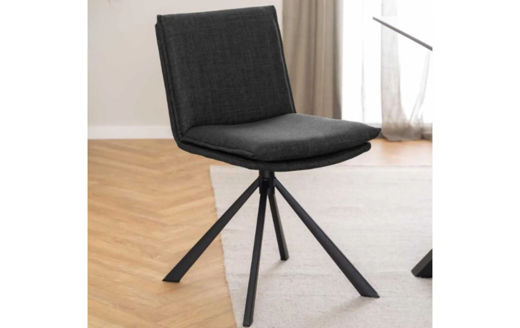Dieser moderne Esszimmerstuhl verbindet stilvolles Design mit hohem Sitzkomfort und ist eine ideale Ergänzung für zeitgemäße Wohn- und Essbereiche. Der hochwertige Stoffbezug in elegantem Dunkelgrau verleiht dem Stuhl eine edle, zeitlose Optik und lässt sich vielseitig kombinieren. Das stabile 4-Stern-Fußkreuz sorgt für sicheren Stand und unterstreicht den modernen Charakter des Stuhls. Dank der integrierten Drehfunktion bietet der Esszimmerstuhl zusätzliche Bewegungsfreiheit und erhöht den Komfort im Alltag. Ein dekorativer Reißverschluss auf der Rückseite setzt einen stilvollen Akzent und rundet das Design harmonisch ab – perfekt für lange, gemütliche Abende am Esstisch.