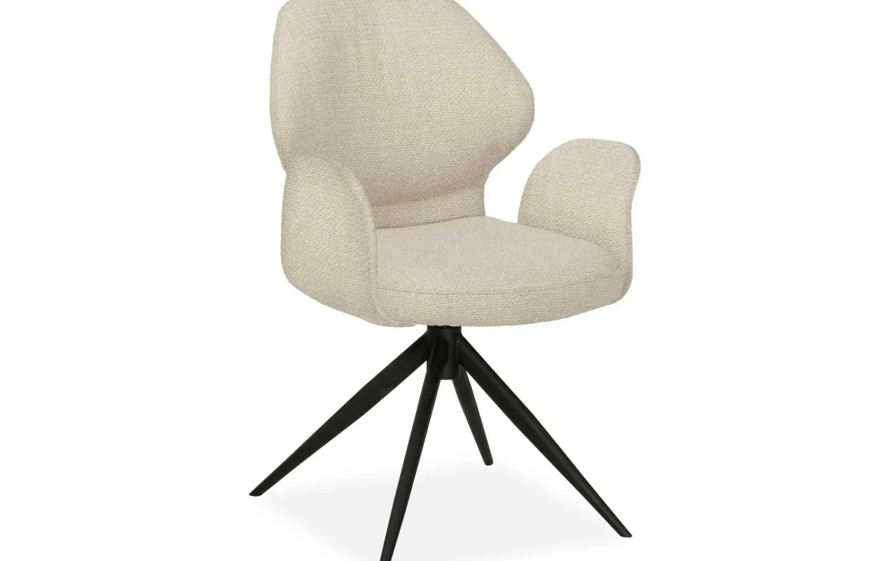 Dieser moderne Esszimmerstuhl mit Armlehnen vereint Komfort, Funktionalität und stilvolles Design. Der Bezug in der Farbe Natural verleiht dem Stuhl eine warme, wohnliche Ausstrahlung, während das schwarze Gestell einen eleganten, modernen Kontrast setzt.