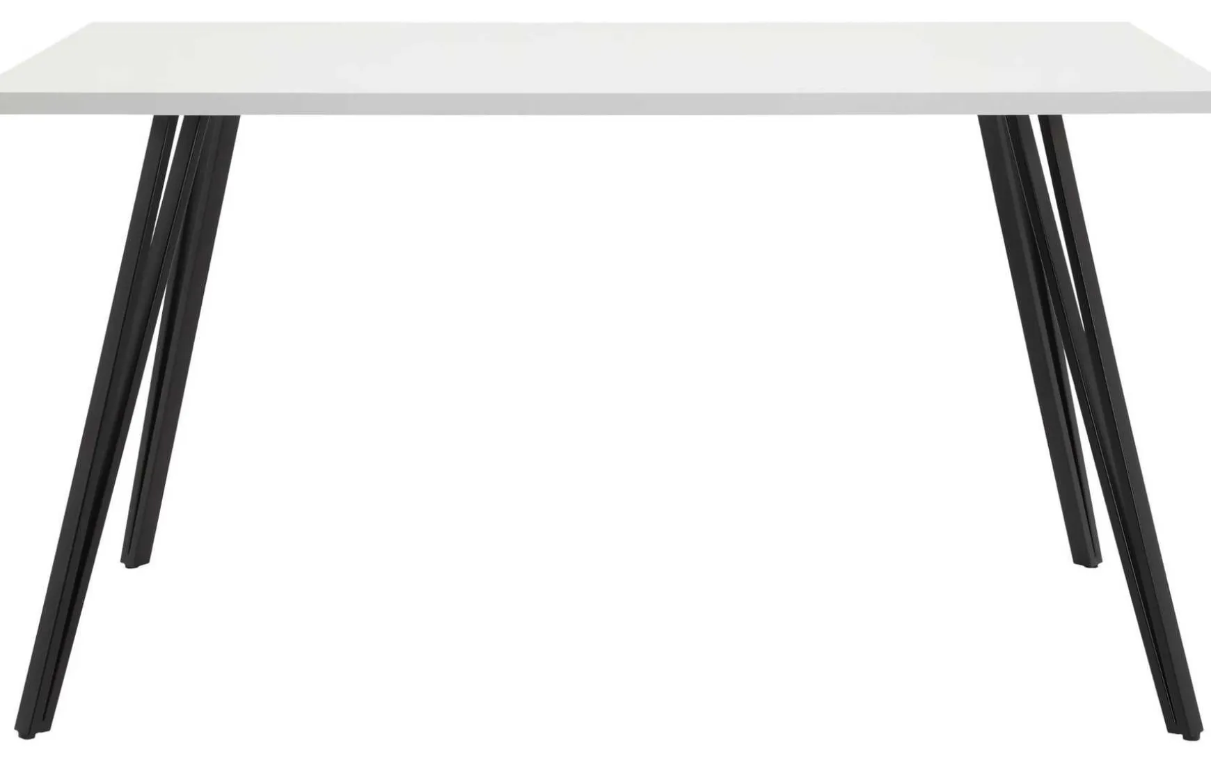 Dieser moderne Esstisch mit einer Tischplatte, welche in Hochglanz Weiß lackiert wurde, passt perfekt in Ihren Essbereich. Das elegante Schwarz gepulverte V-Gestell in bildet zur Tischplatte einen modernen Kontrast. Mit einer Größe von 140 x 80 cm ist dieser auch für kleinere Bereiche perfekt geeignet.
