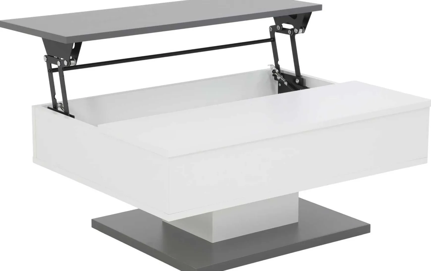 Dieser moderne Funktions-Couchtisch überzeugt mit einer geteilten Tischplatte, die einseitig aufklappbar ist und so praktischen Zusatznutzen bietet. Die farblich abgesetzte Boden- und Tischplatte verleiht dem Tisch ein modernes, klares Design in zeitlosem Weiß. Dank seiner kompakten Maße und der pflegeleichten Oberfläche eignet sich der Couchtisch ideal für den Alltag und wird vormontiert geliefert.