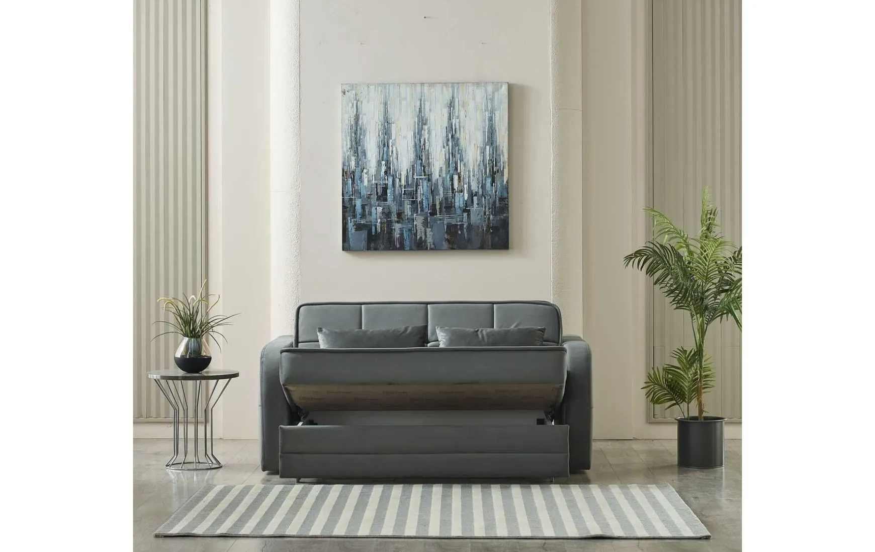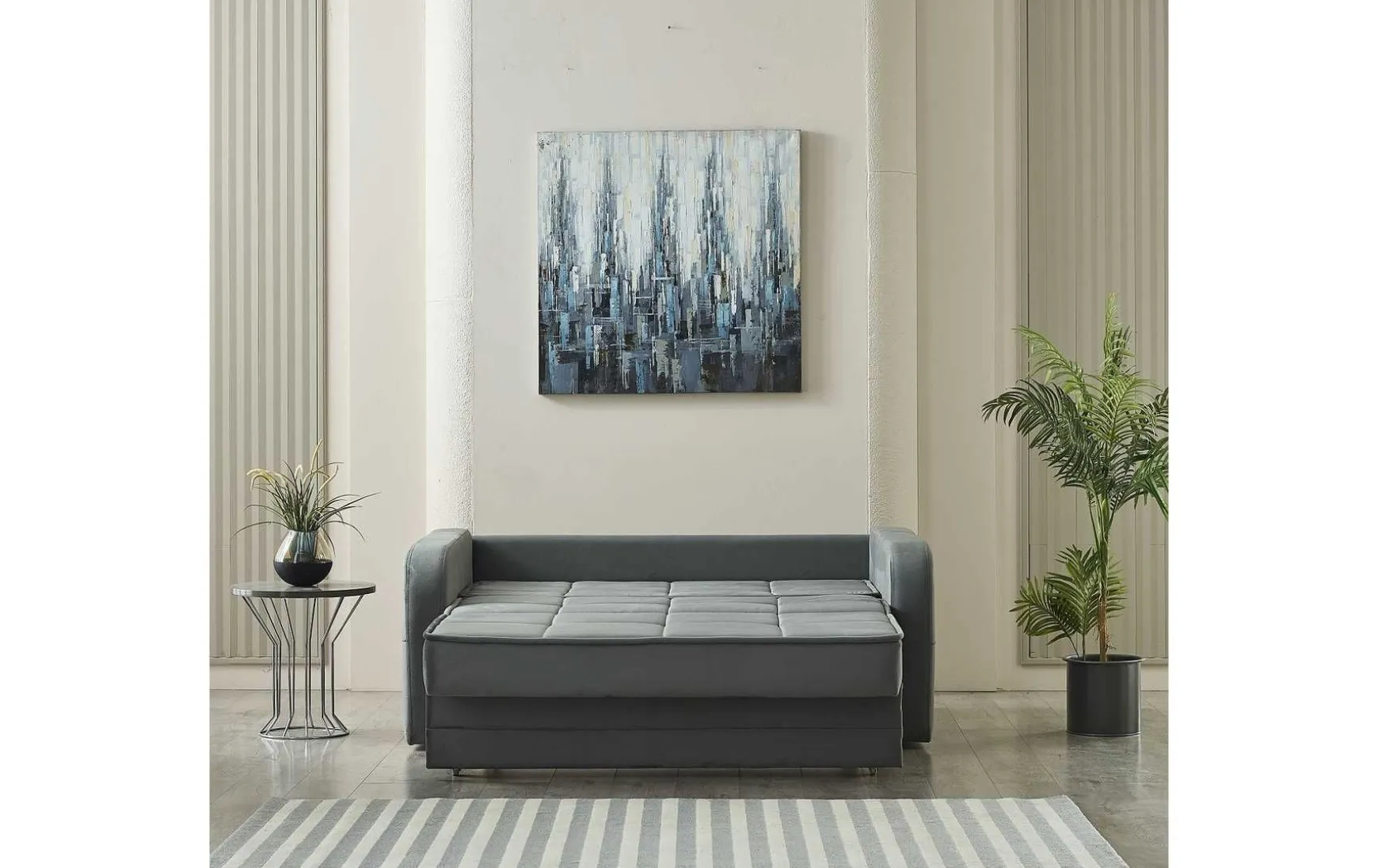 Dieses praktische Funktionssofa in zeitlosem Grau überzeugt durch Komfort und vielseitige Einsatzmöglichkeiten. Ausgestattet mit einer integrierten Schlaffunktion bietet es eine großzügige Liegefläche von ca. 145 × 194 cm und eignet sich ideal für Gäste oder den täglichen Gebrauch. Der rundum echt bezogene Rücken ermöglicht eine freie Platzierung im Raum, während zwei Zierkissen zusätzlichen Komfort bieten. Mit einer Sitzhöhe von ca. 48 cm, einer Sitztiefe von ca. 66 cm und hochwertiger HR-Schaum-Polsterung sorgt das Sofa für angenehmes Sitzen und Liegen.