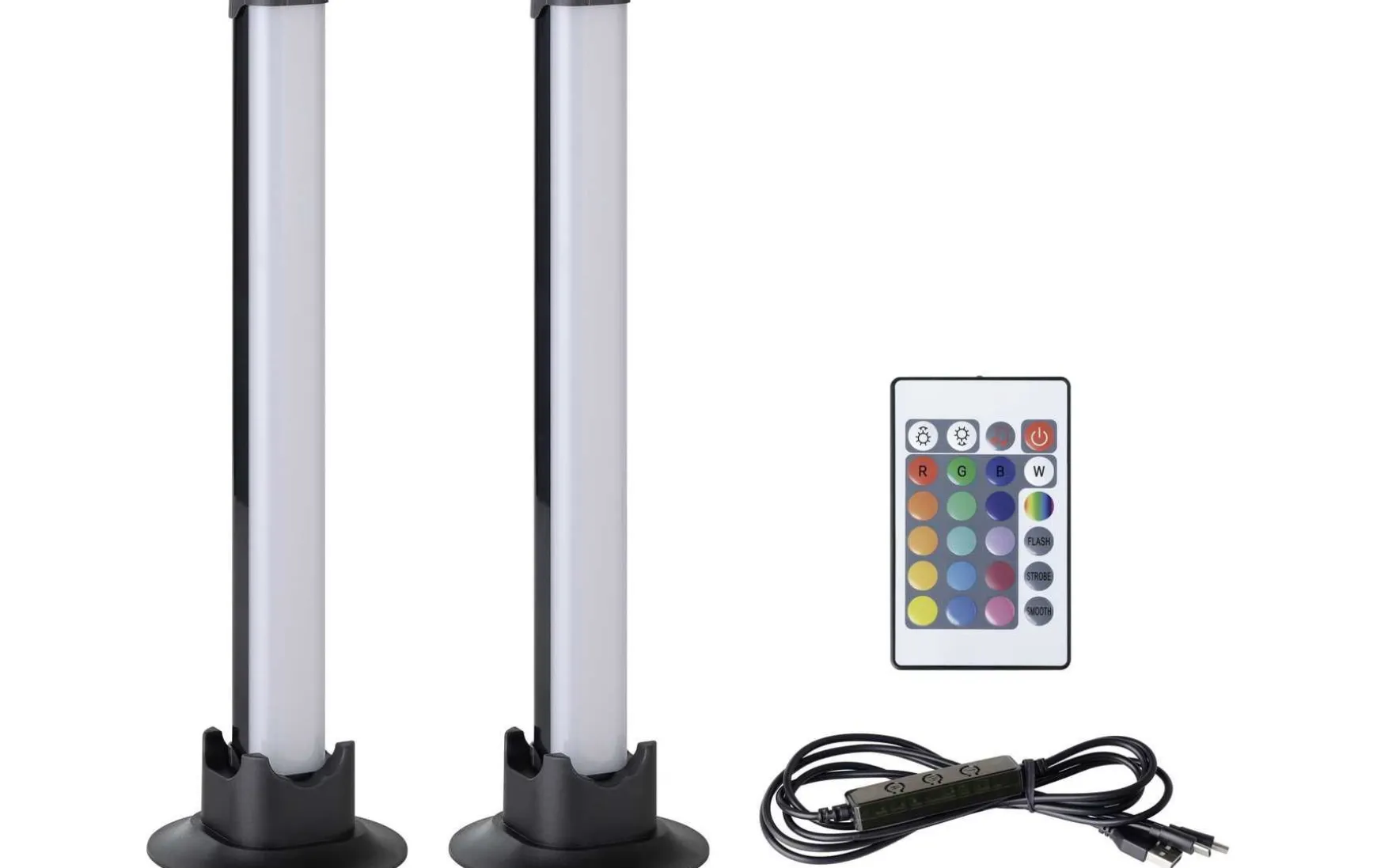 Jede Leuchte ist mit einem RGB-Farbwechsel sowie einer Dimmfunktion ausgestattet und bietet 16 verschiedene Farben sowie 4 vordefinierte Farbprogramme. Die Steuerung und Einstellung erfolgen bequem über eine Fernbedienung. Zusätzlich verfügen die Lampen über einen USB-C-Anschluss. Die Leuchten haben einen Durchmesser von je 3 cm und eine Höhe von 32,5 cm.