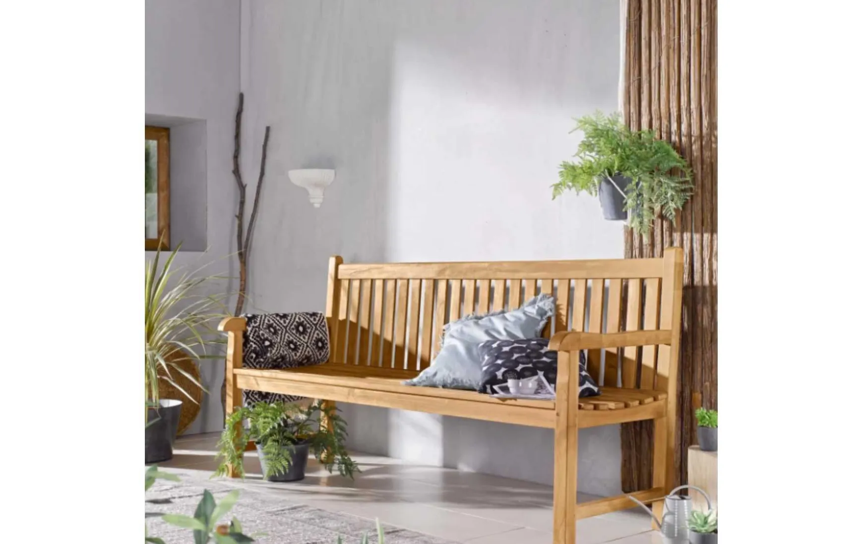 Diese Gartenbank überzeugt als eleganter 3-Sitzer mit natürlichem Charme und hohem Komfort. Gefertigt aus langlebigem Teakholz aus nachhaltiger Forstwirtschaft, bietet sie hohe Qualität und Beständigkeit gegen Witterungseinflüsse. Dank der UV-beständigen Oberfläche behält das Holz auch bei intensiver Sonneneinstrahlung seine Schönheit. Das schlichte Design fügt sich harmonisch in jede Gartengestaltung ein und ermöglicht vielseitige Einsatzmöglichkeiten. Der geringe Pflegeaufwand macht die Bank zu einer praktischen und stilvollen Ergänzung für Ihren Außenbereich.