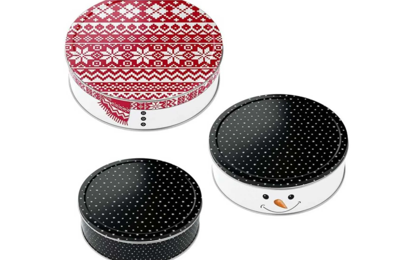 Dieses Set umfasst drei Keksdosen in verschiedenen Größen im weihnachtlichen Design zum Verpacken, Aufbewahren und Frischhalten von selbst gemachten Weihnachtskekse. Die Dosen ergeben aufeinander gestapelt einen niedlichen Schneemann und sind ideal zum Aufbewahren von Keksen, Plätzchen oder von anderen Köstlichkeiten und halten den Inhalt frisch. Die Keksdosen sind auch toll zum Verschenken oder als Mitbringsel befüllt mit selbstgebackenen Weihnachtsplätzchen.